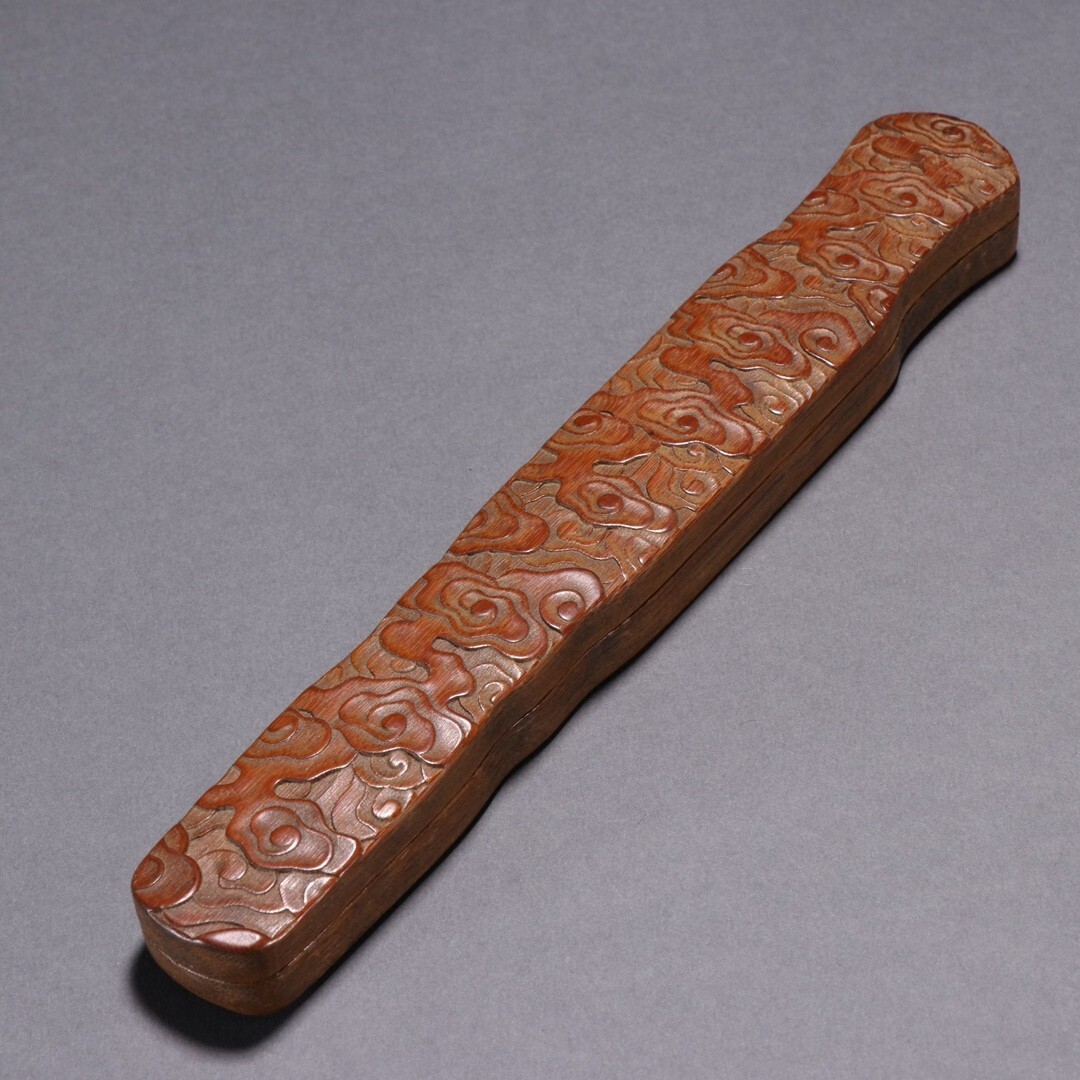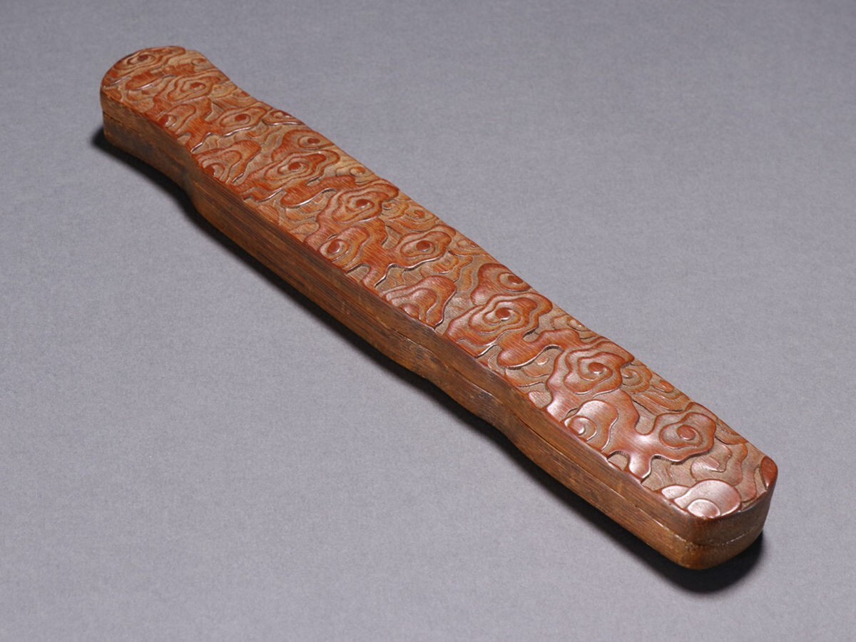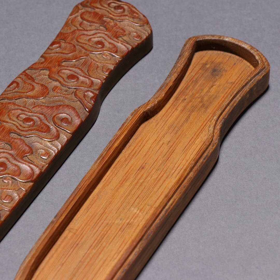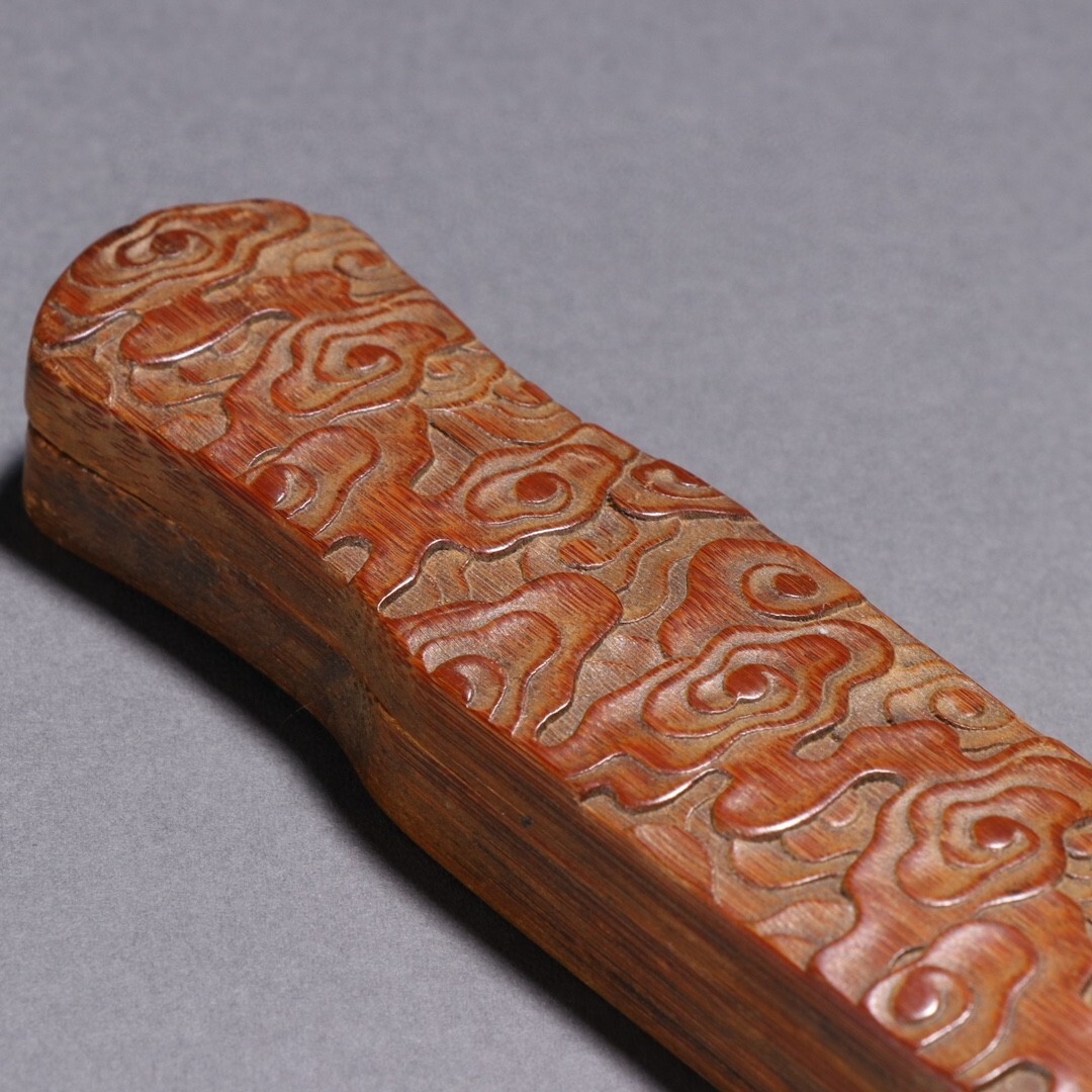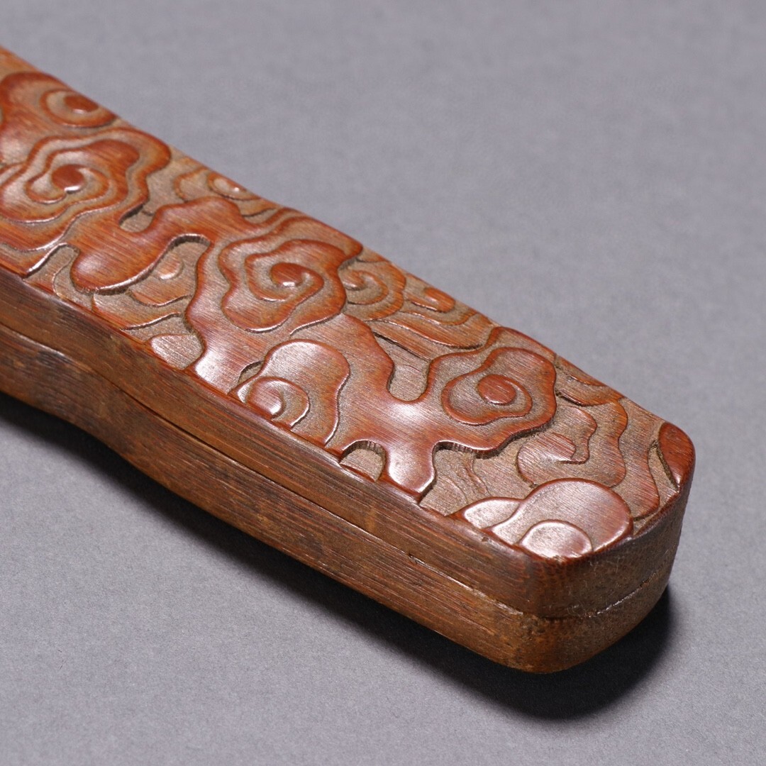 清時代 老竹彫 祥雲紋 琴形盒【仁】極細工 手彫り 古賞物 中国古美術 蔵出
