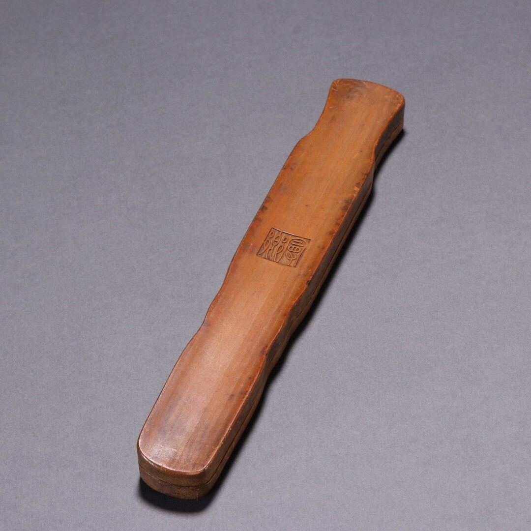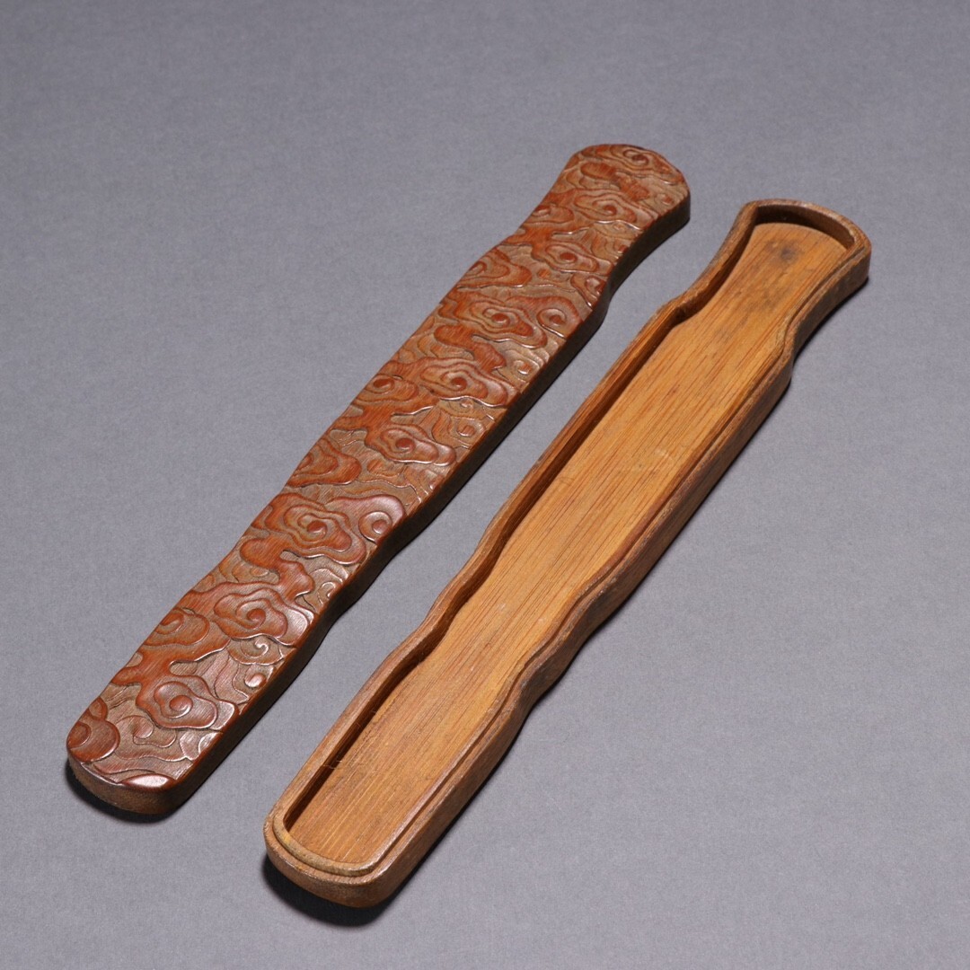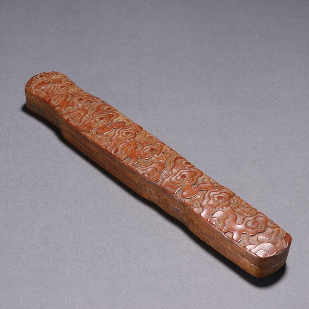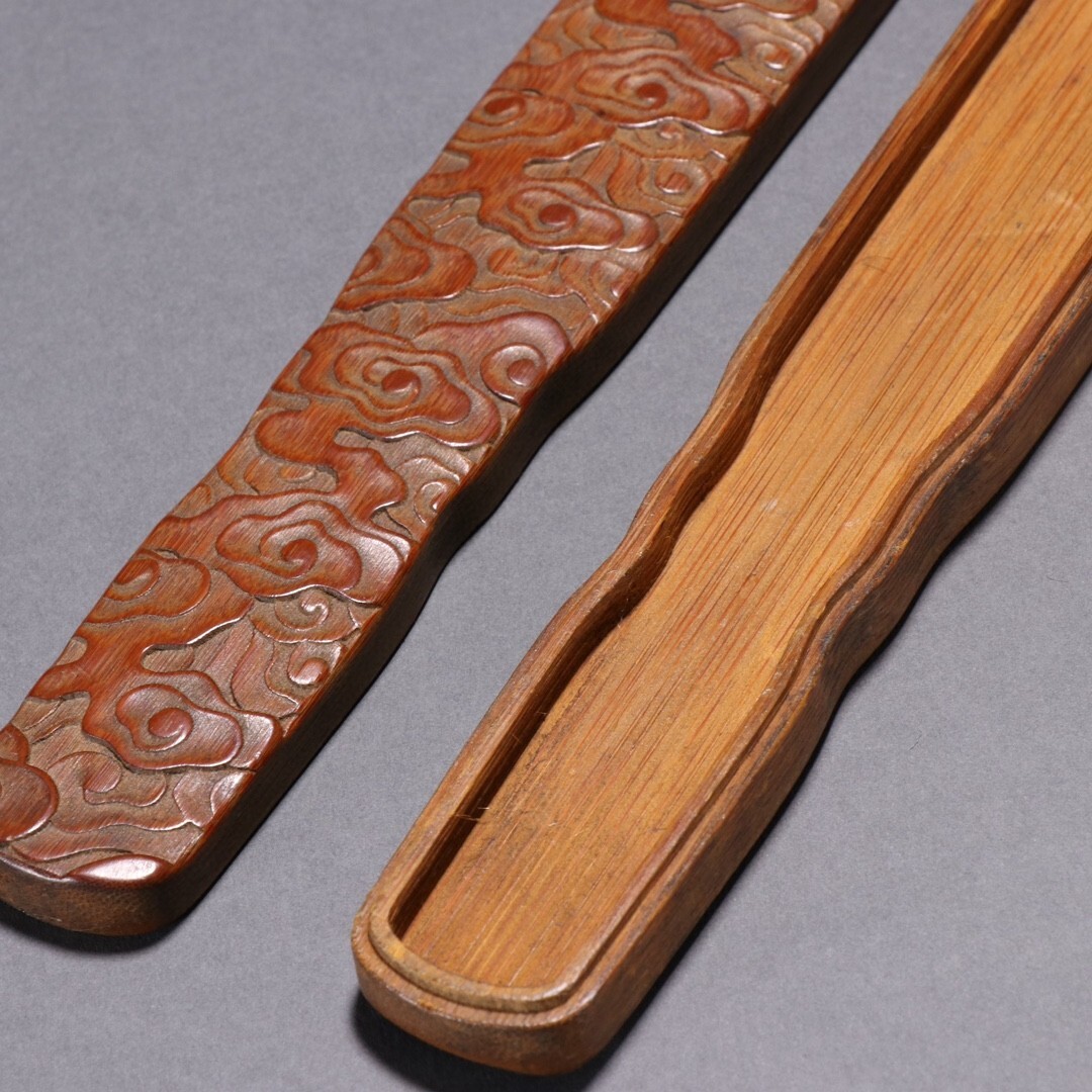 清時代 老竹彫 祥雲紋 琴形盒【仁】極細工 手彫り 古賞物 中国古美術 蔵出