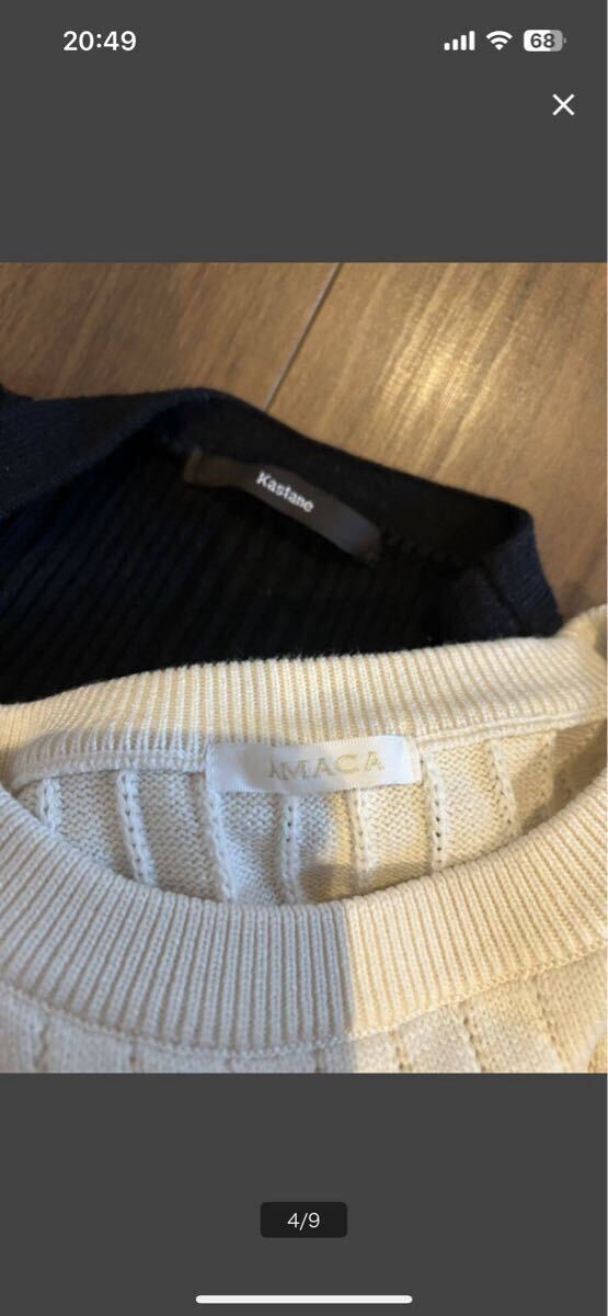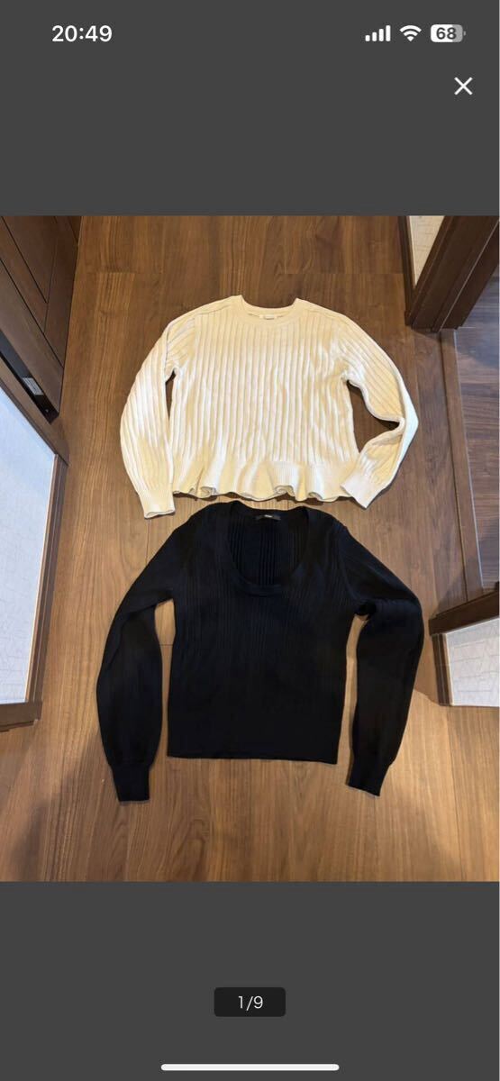 アマカのオフホワイトニットとカスタネのブラックニットの2枚まとめ売りです。アマカの方は5回も着てないです。ブラックの方はアマカよりは着たかなと思います。シンプルなので仕事でもプライベートでも使えると思います。詳しくは計測写真ご参考にして下さい。細かい事が気になるかは入札ご遠慮下さい。これから使えるアイテムです。洋服が増えすぎているので出品します。