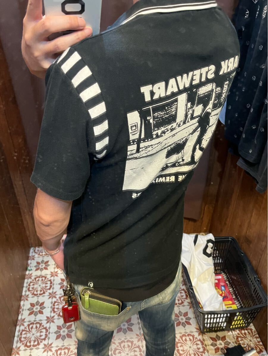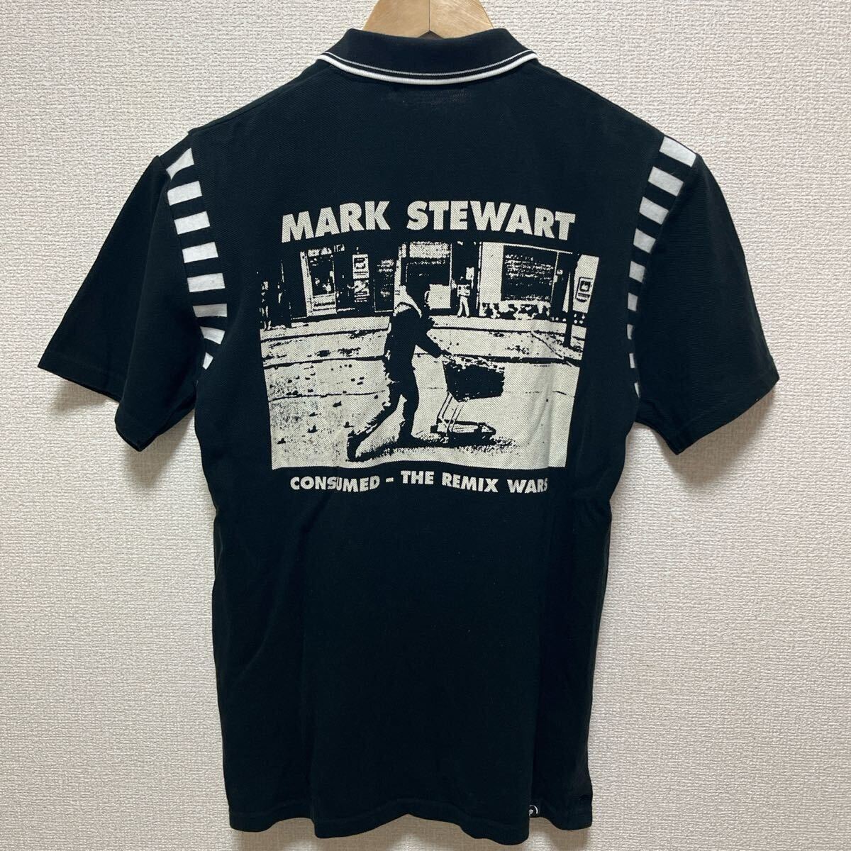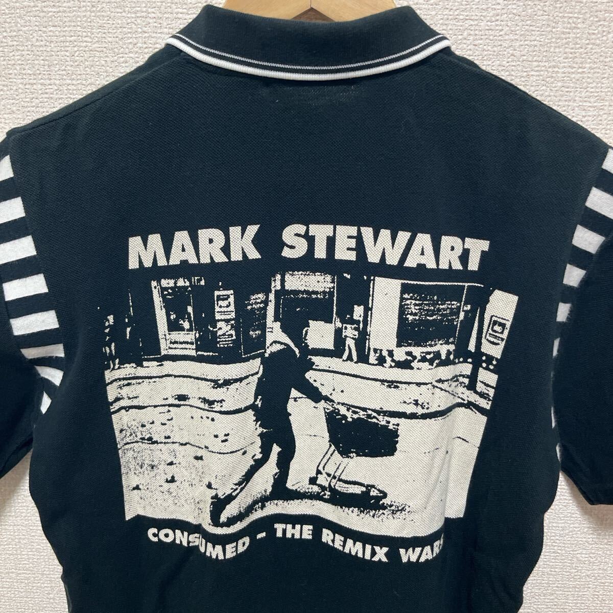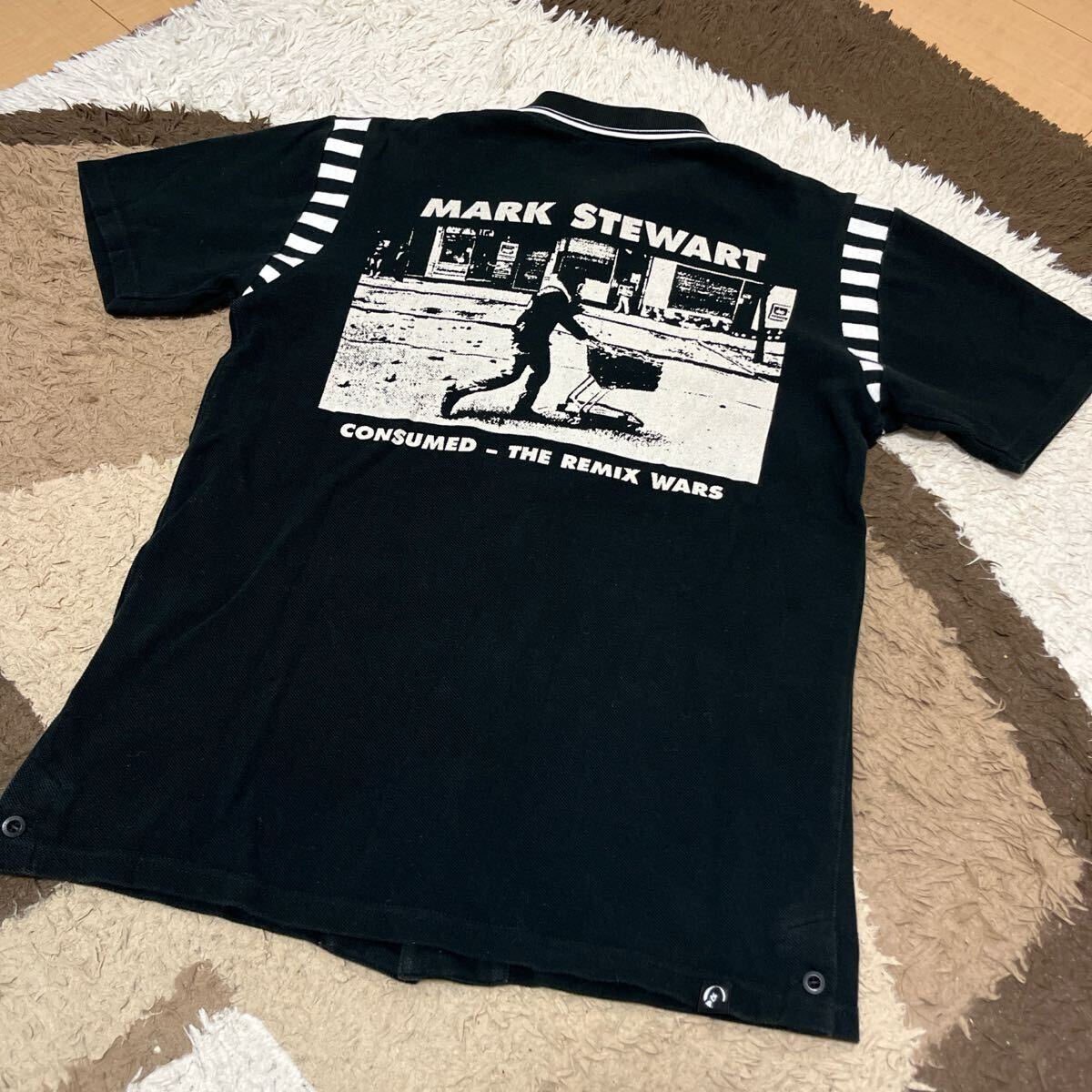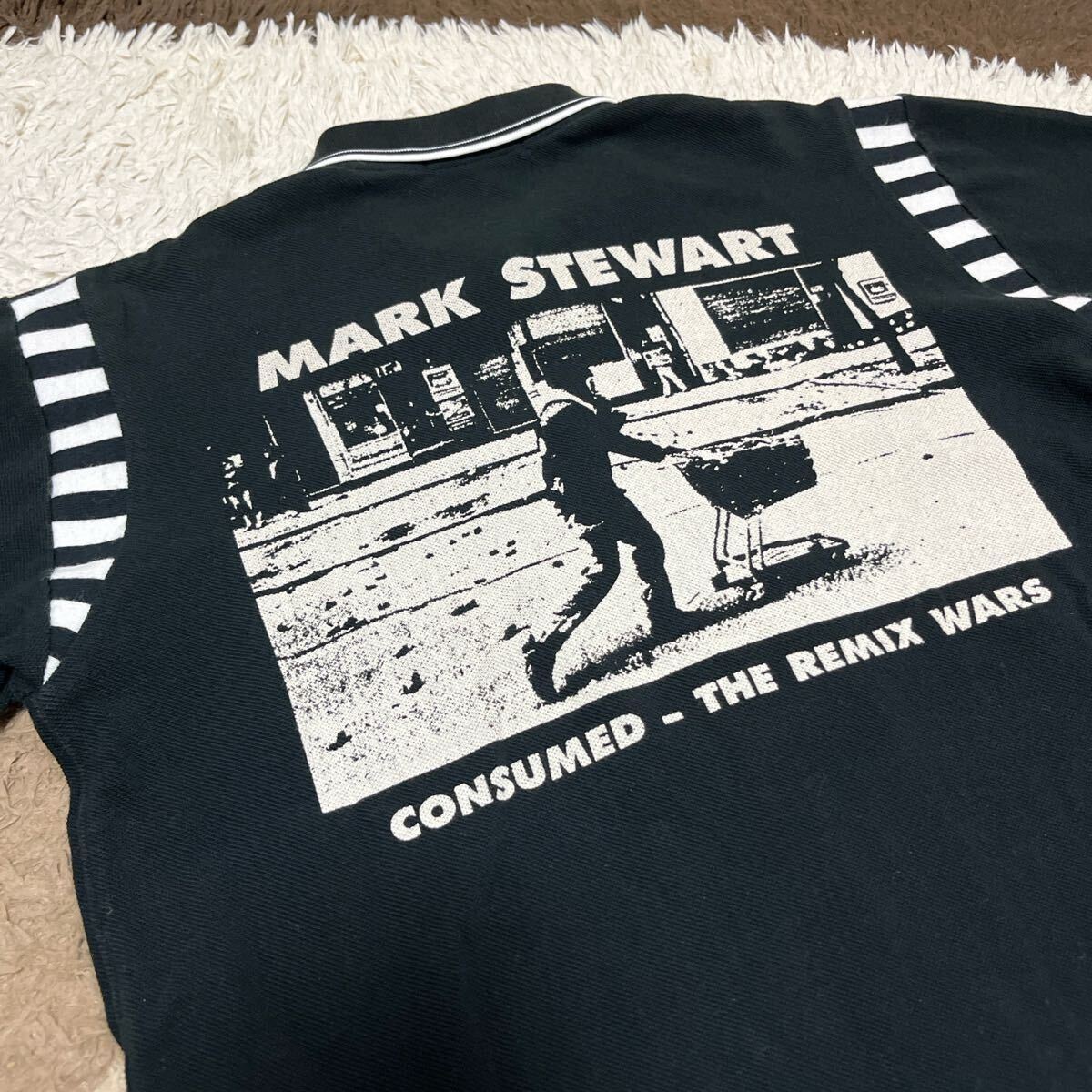 黒を基調としたストライプ柄が特徴で、バックには「MARK STEWART / CONSUMED - THE REMIX WARS」のプリントが描かれております。