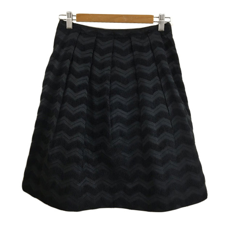 イネド INED スカート 台形 フレア 膝丈 タック ジャガード 9 黒 ブラック レディース