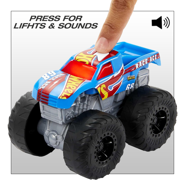 車体上部を押すと車内が光り、エンジン音やクラッシュエフェクト、テーマソングが聞こえます。
