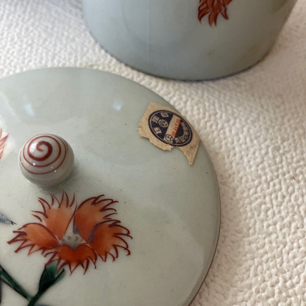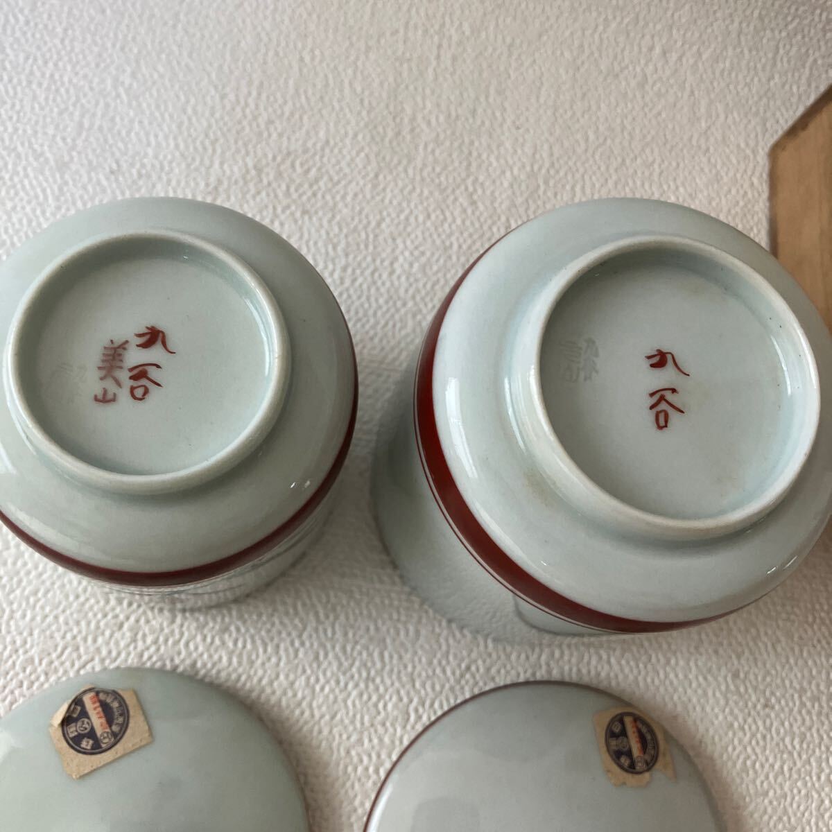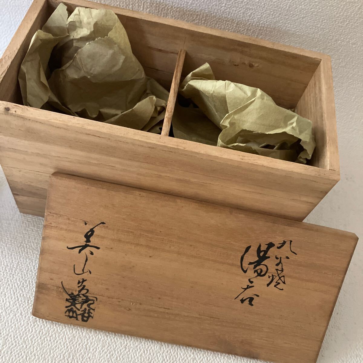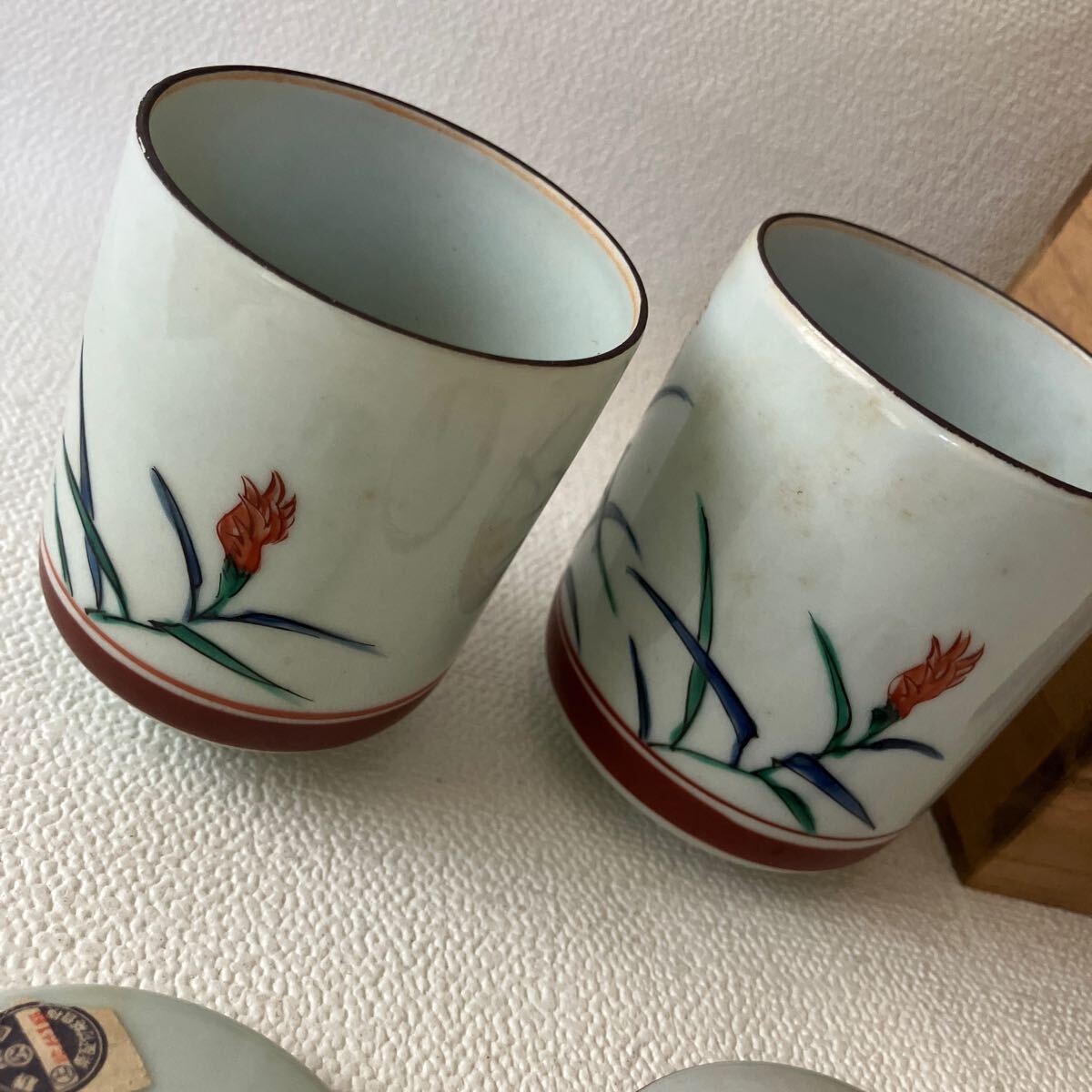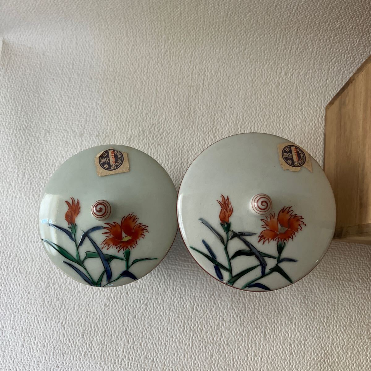 c777 60 九谷焼 湯呑 夫婦 セット 和食器 木箱入り 陶器 ゆのみ サイズ違い 蓋付き 花柄 美山 汚れ有り 和風 和柄 日本 和室 コップ