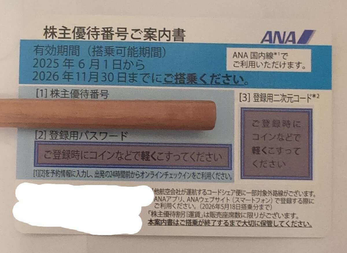 ANA 株主割引券 株主優待券 1枚 2025年6月1日〜2026年11月30日まで 送料無料 番号通知のみ