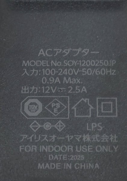 アイリスオーヤマ ACアダプタ SOY-1200250JP DC12V2.5A 動作OK