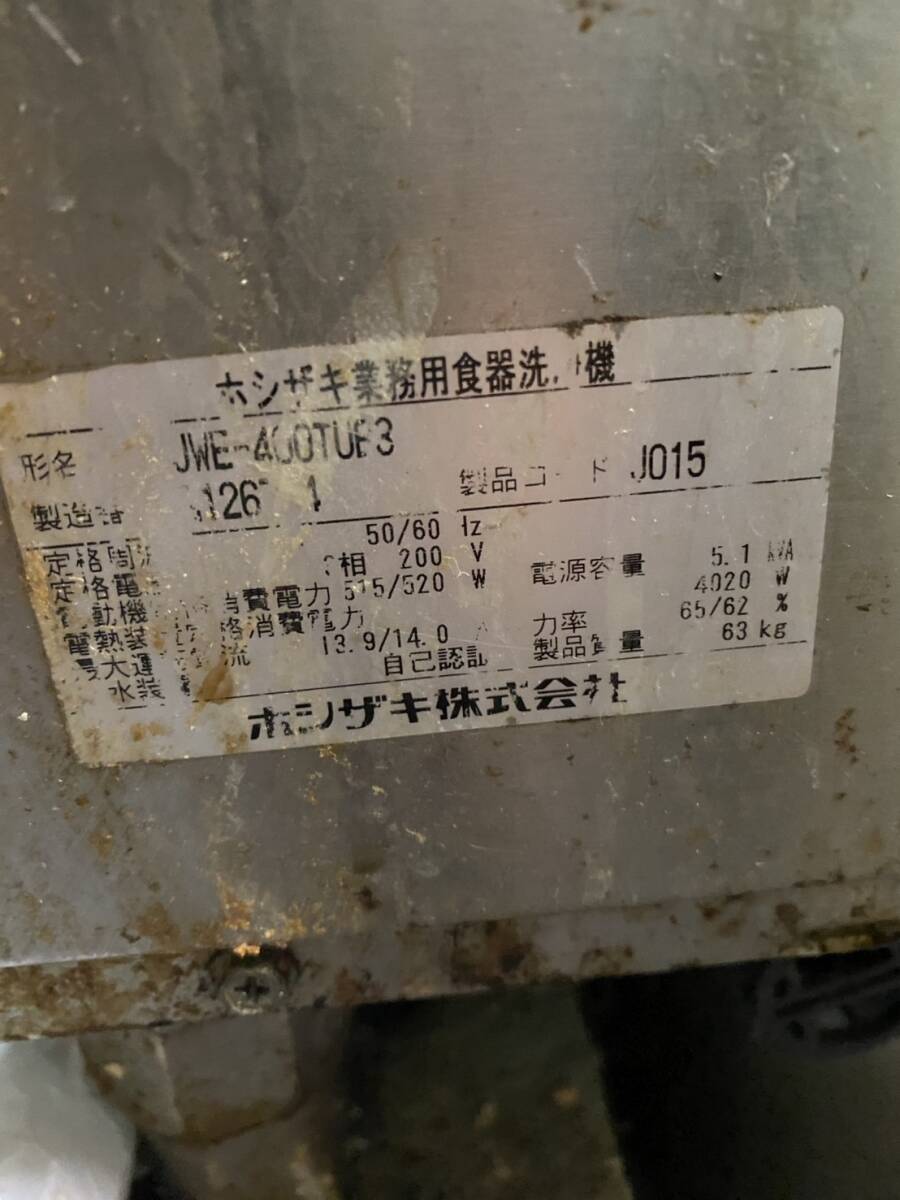 CF67 ★ホシザキ★ 2017年製 食器洗い機 アンダー食洗機 JWE-400TUB3 厨房用 業務用 店舗用