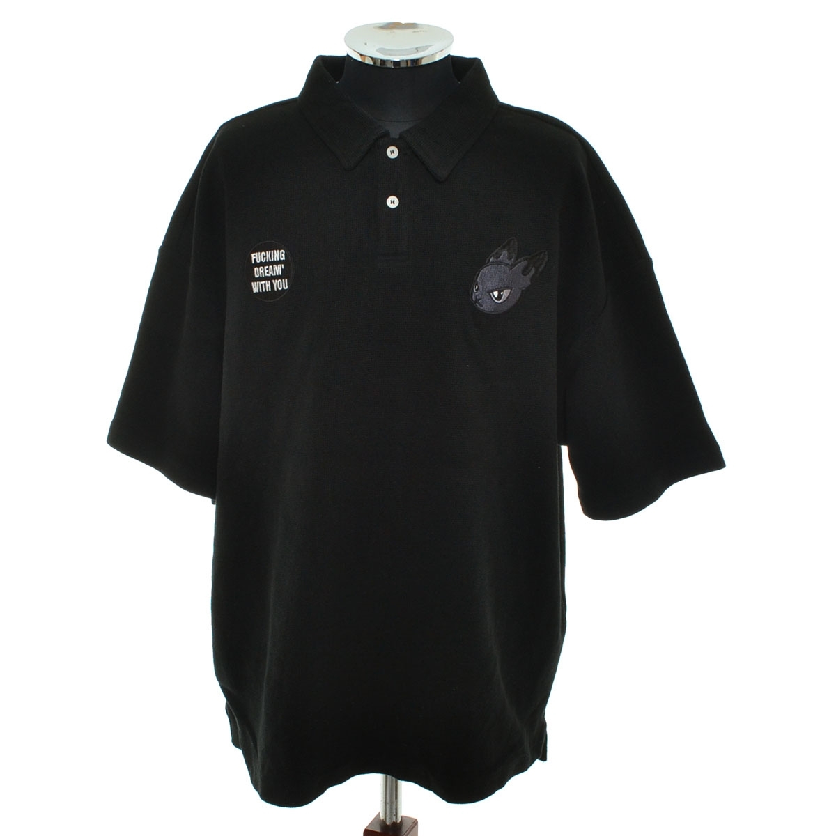 〇524419 MAD FOOL MIND ○ポロシャツ オーバーサイズ ワッフル 半袖 サイズXL メンズ ブラック