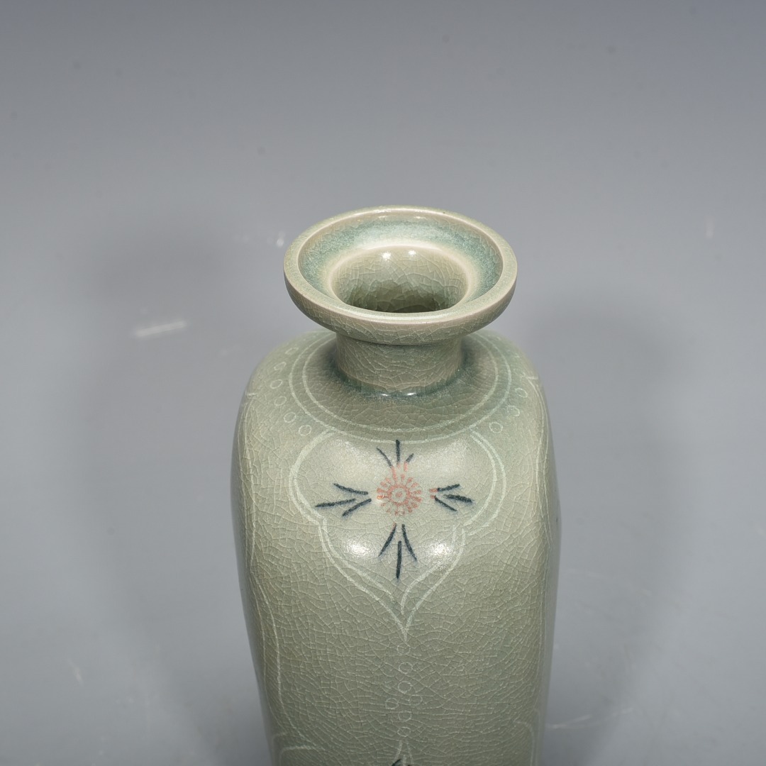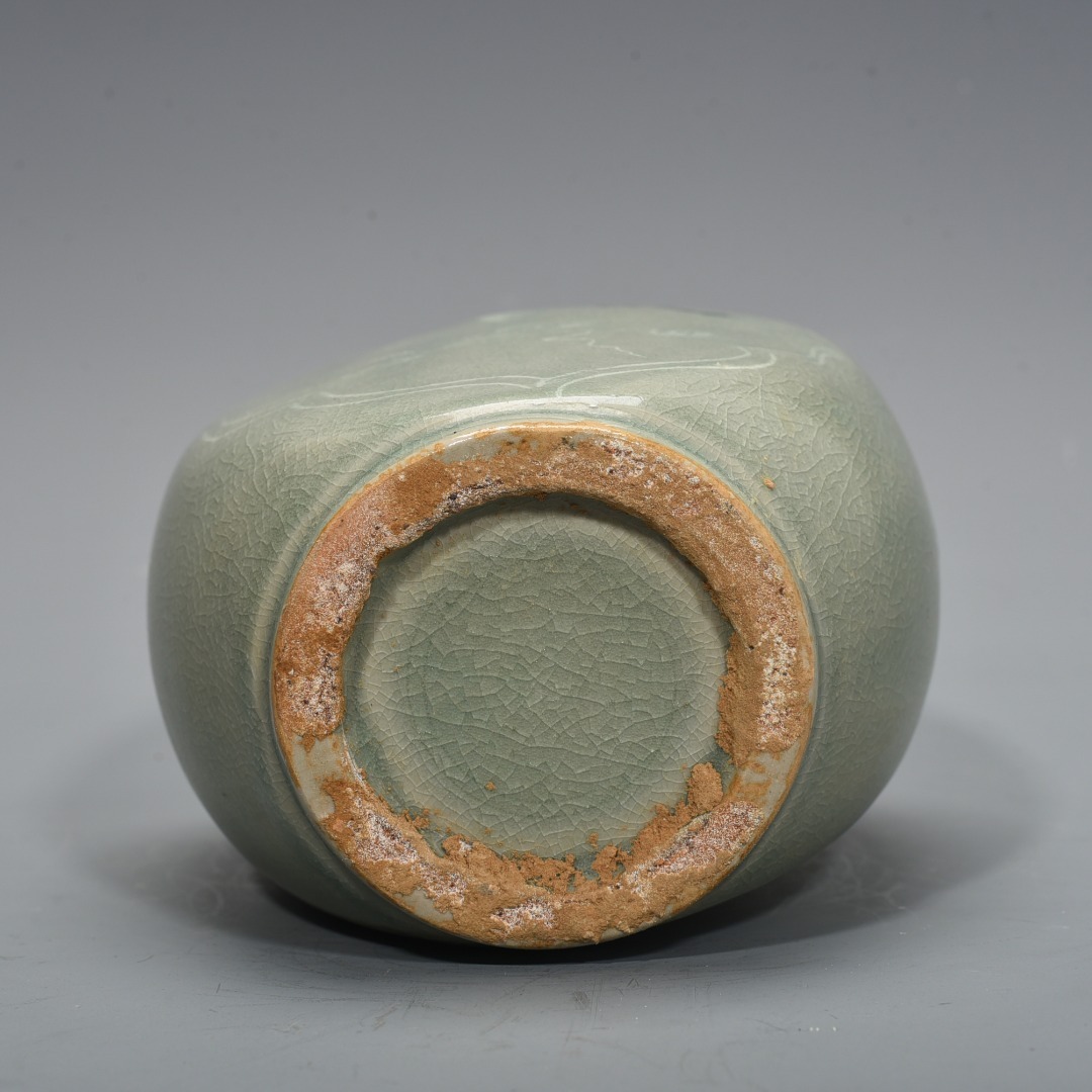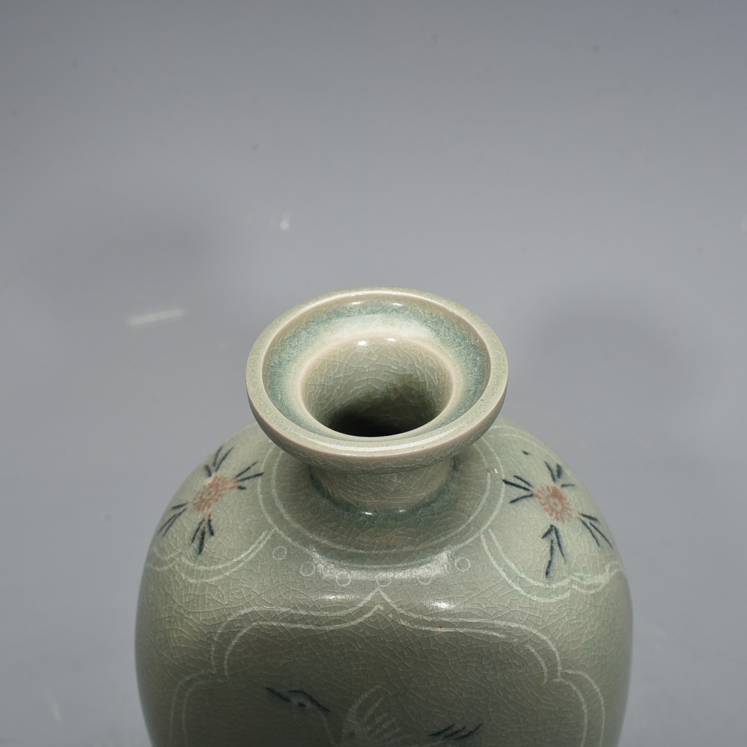 【李朝/高麗 特集出品】李朝粉青 雲鶴の紋様をちりばめた平たい瓶 朝鮮古陶磁器/李朝時代 朝鮮美術 622