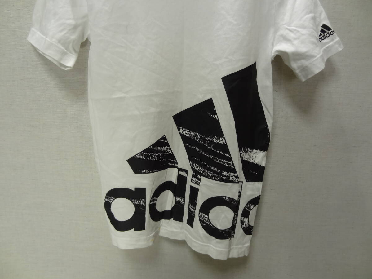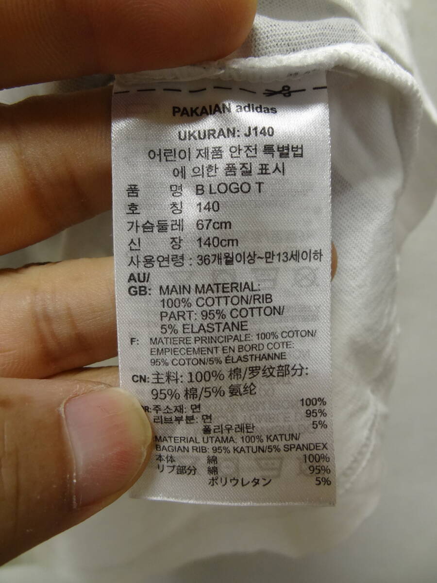 全国送料無料 アディダス adidas 子供服キッズ男の子 綿100%素材 スポーツ 半袖 裾BIGロゴ入り 白色 Tシャツ 140