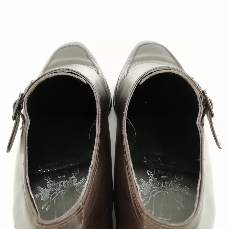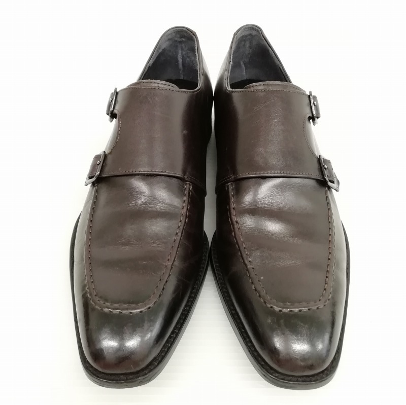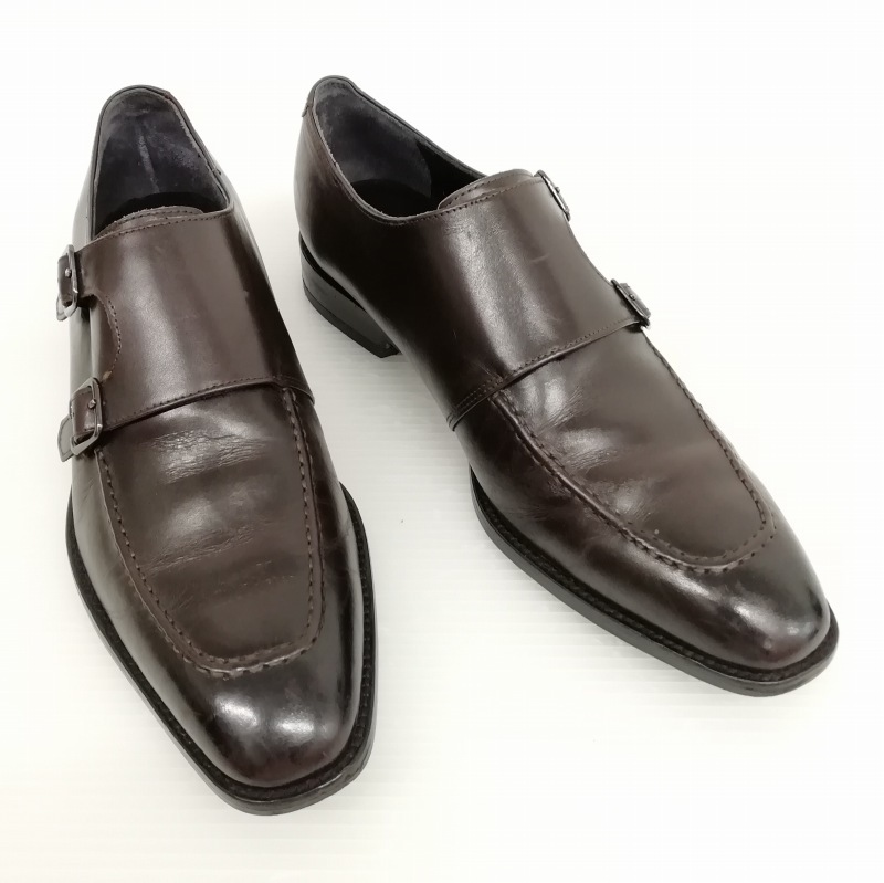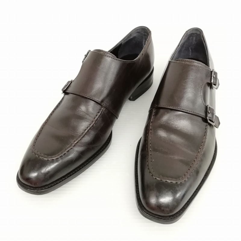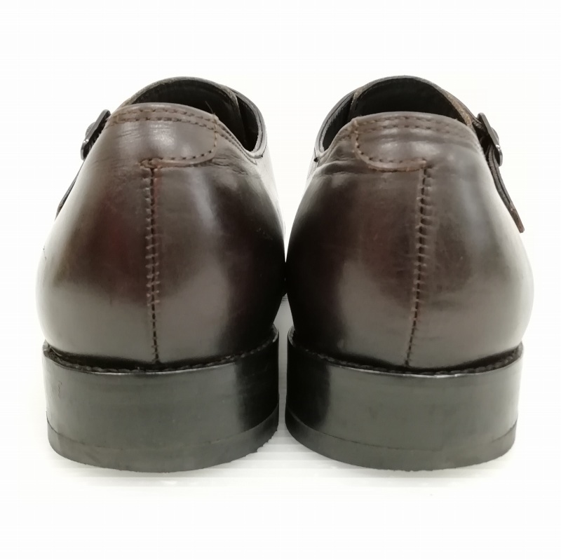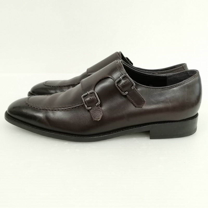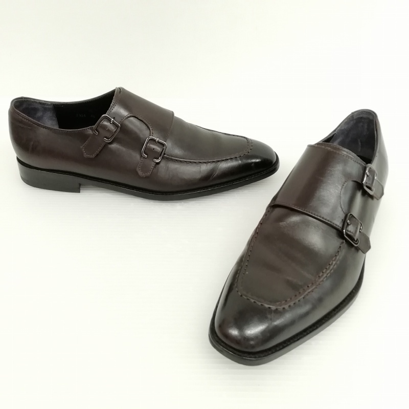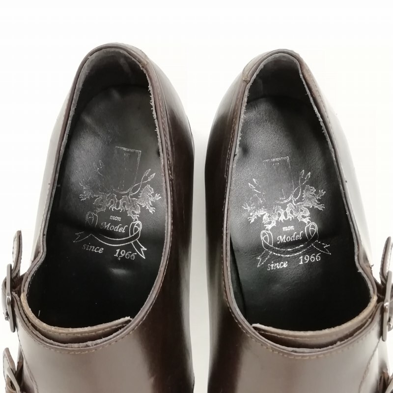 mon model モンモデル J304 ダブルモンク Uチップ レザー シューズ ビジネス ドレス 8.5 ダークブラウン メンズ