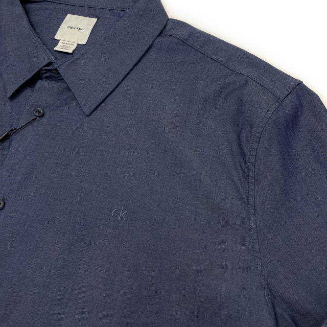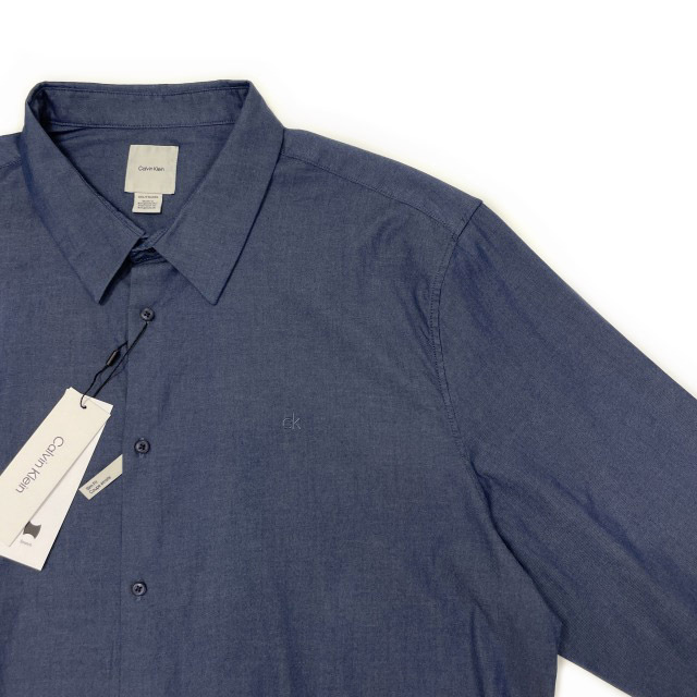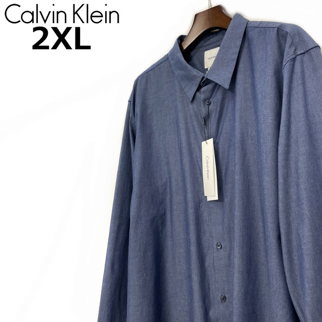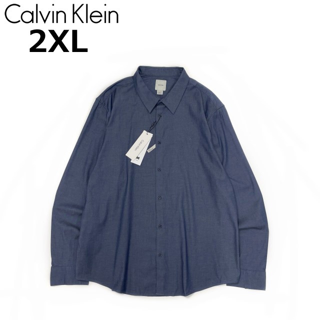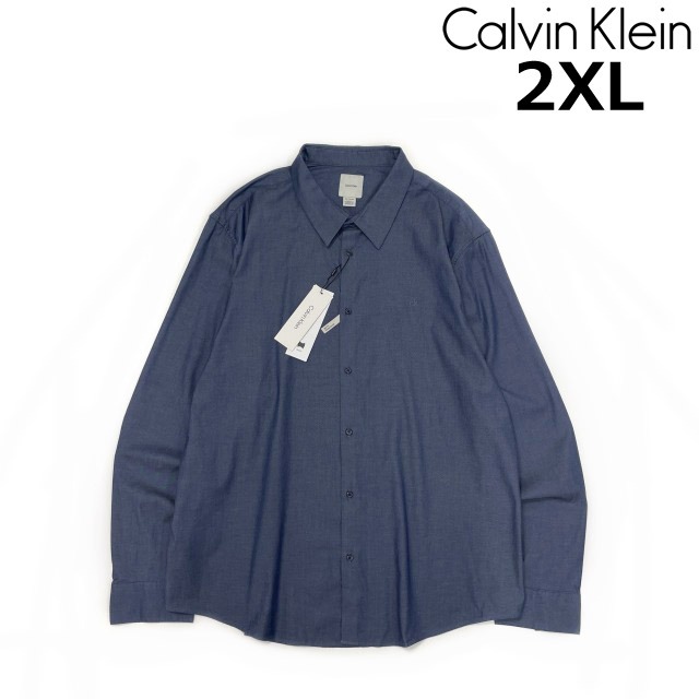 売切り【正規新品】Calvin Klein カルバンクライン◆長袖 シャツ US購入 ストレッチ CK シンプル ロゴ刺繍(2XL)青 181215