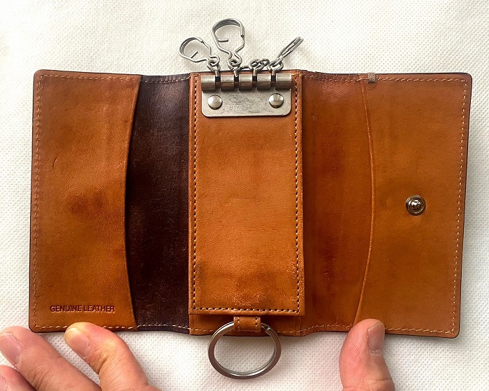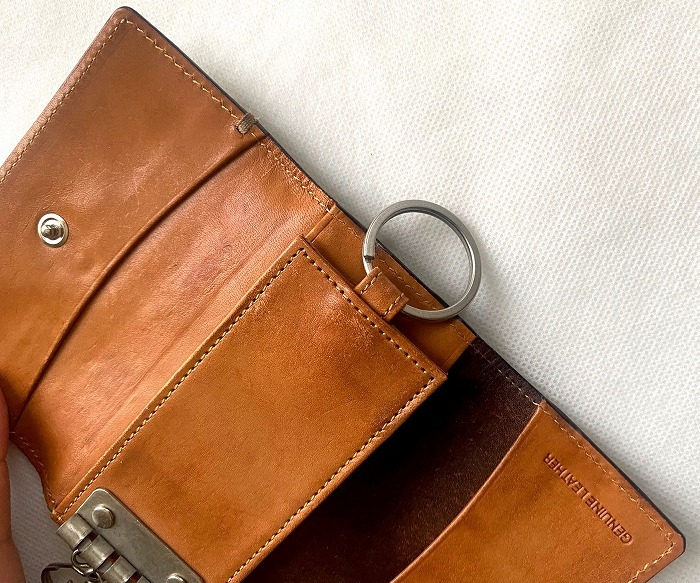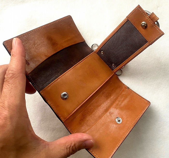 ・素材: GENUINE LEATHER ・カラー: ダークブラウン ・サイズ: ワンサイズ(実寸を参考にしてください。 実寸(平置きにして)縦 約6cm × 横 約11.0cm × 厚さ 約2.0cm(多少の誤差はお許しください) ポール・スミス コレクションのPCステインカーフシリーズ。 イタリア製のカーフスキンを使用。 一点ずつ革の表情の違うムラのある染色がハンドメイドフィーリング溢れるシリーズ。内装にはタンカラーの革を使用し、内装の一部に外側と同素材の革を用いてアクセントをつけたデザイン。 ステッチ糸とカンヌキ留めのカラー糸がポイント。 ※こちらの商品は全て色ムラ感を出す為に革の血筋や色ムラは味として表現しております。 レザーの風合いを感じられるシンプルなデザインがポイント。 ハリやコシ、ツヤといったレザーならではの質感が楽しめます。 使うほどに手に馴染んでいき、ツヤや深みが増す経年変化も楽しめる素材です。 シンプルなのでビジネスにも合わせやすく、仕事で取り出す機会がある人にもマッチするでしょう。 大切な鍵をまとめて、スマートに持ち歩くことができます。 【仕様】キーフック×4、キーリング×1 使用感があり、金具にくすみ、4スミ や ふち にスレ、アタリ、小傷がありますが、まだまだタフに使っていただけます。 はこなし 本体のみ かなりお値打ちだと思います。この機会にぜひ! 他にもいろいろ出品しています。 管理番号: 202506Y-090355★Case |