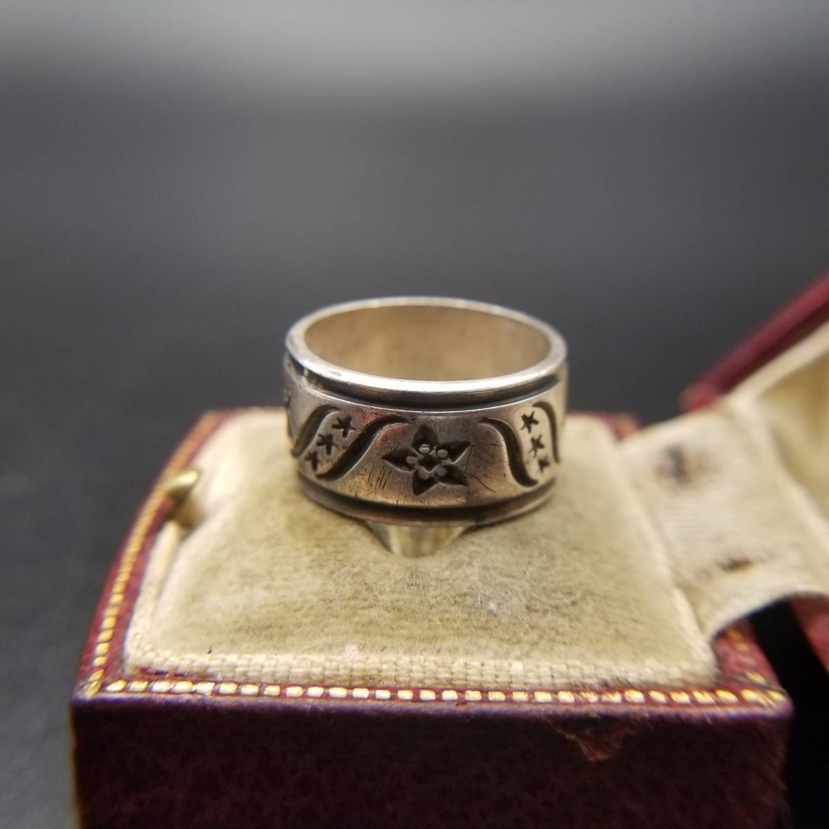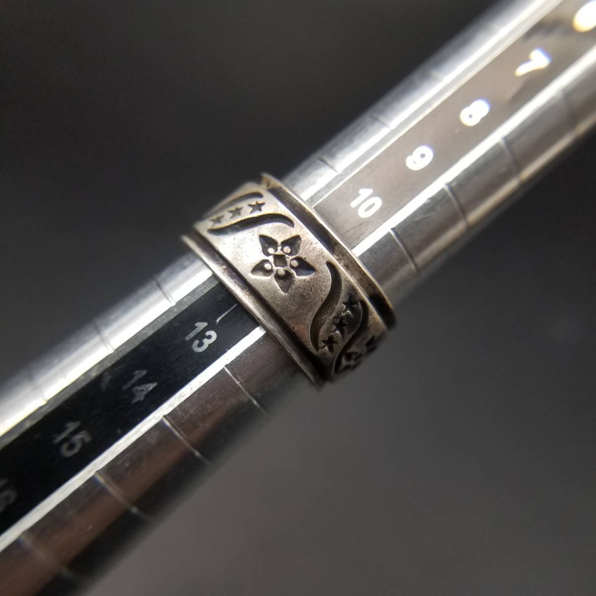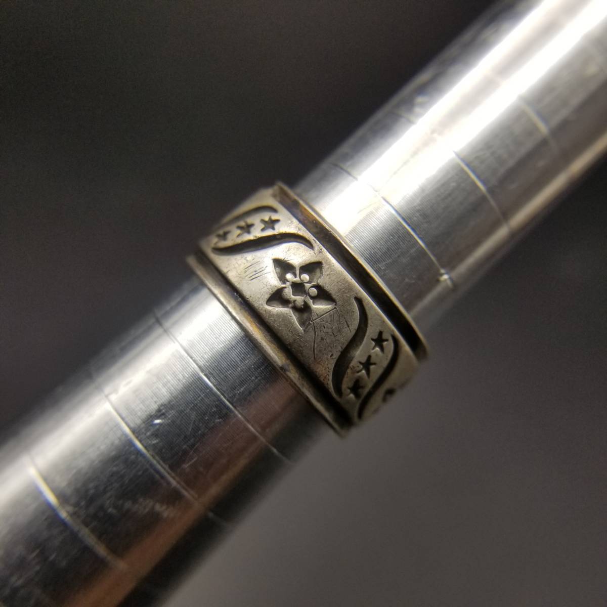 花 流れ星 バンドリング 中太 スターリングシルバーシルバー ヴィンテージ リング 6g 銀 指輪 フローラル スター