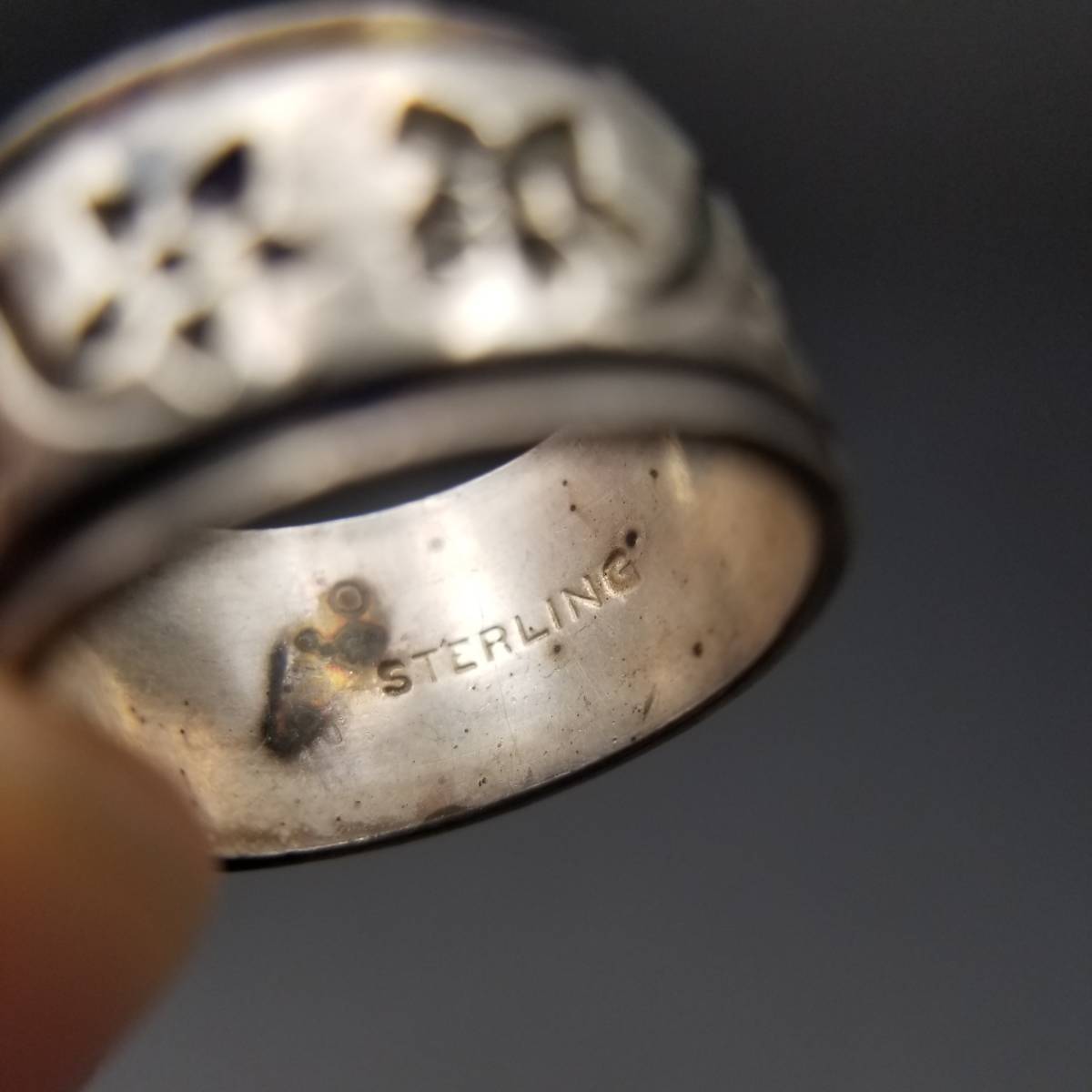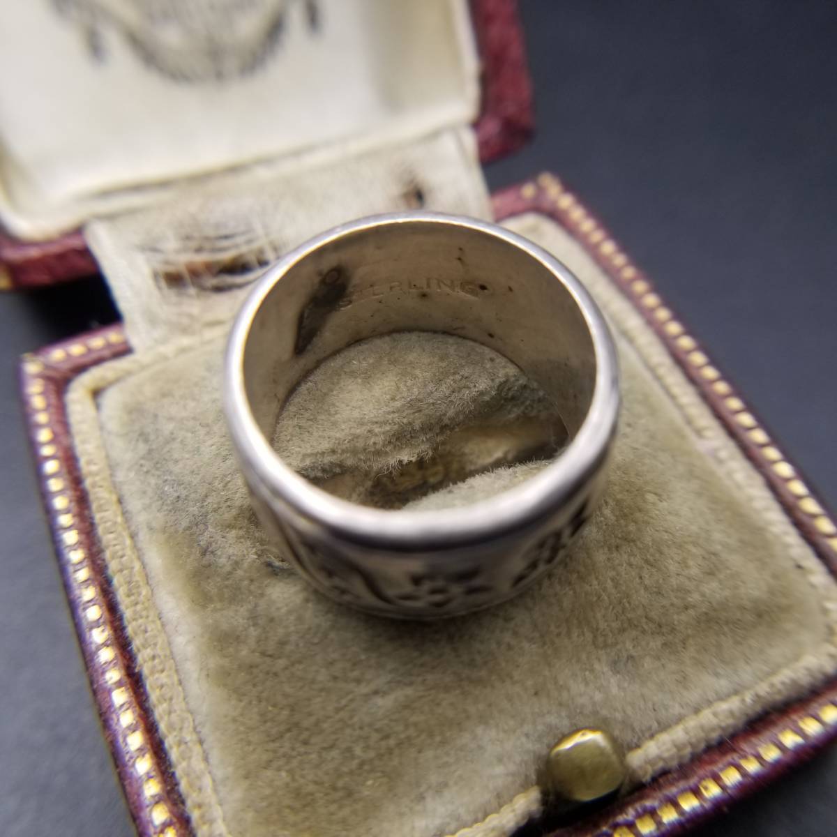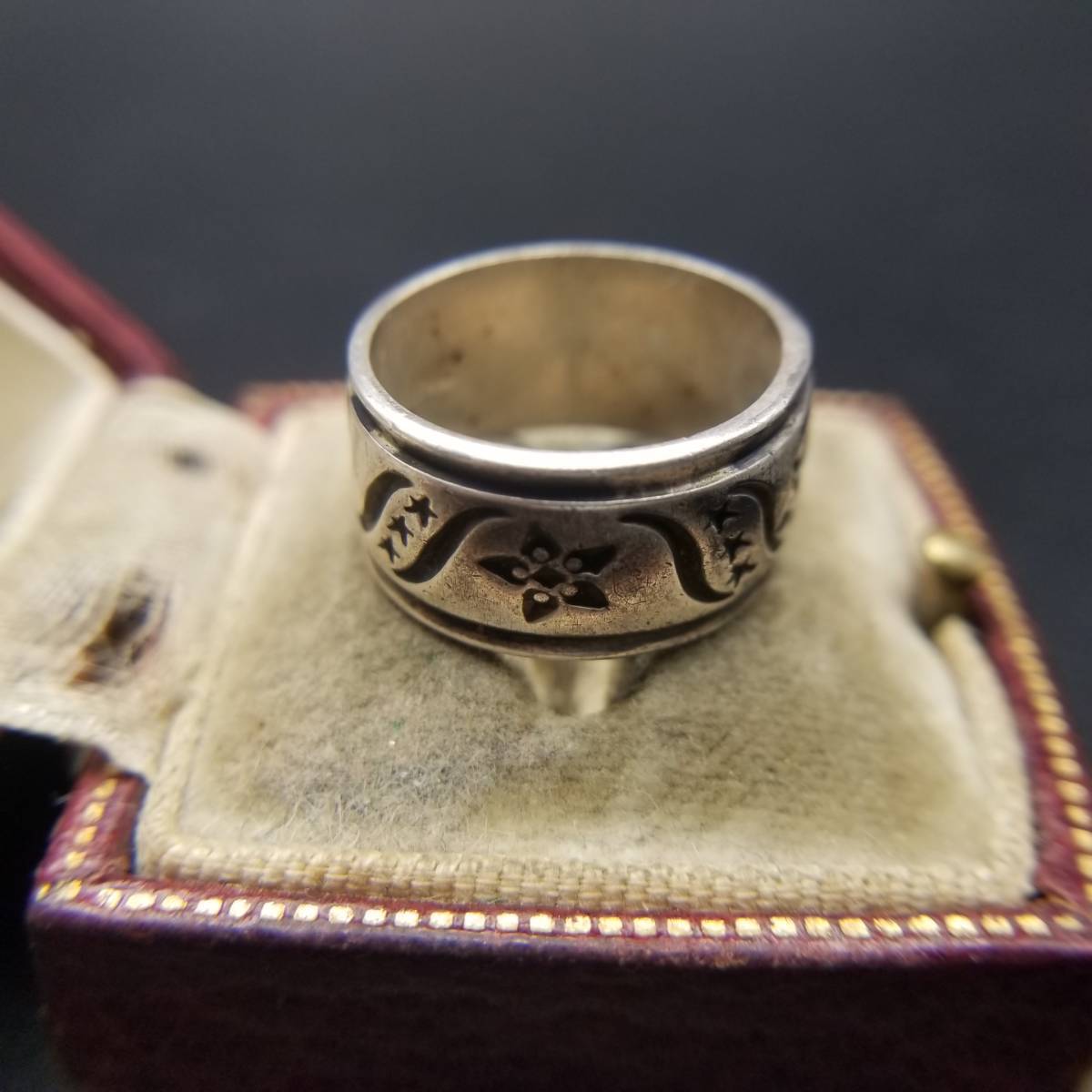 花 流れ星 バンドリング 中太 スターリングシルバーシルバー ヴィンテージ リング 6g 銀 指輪 フローラル スター