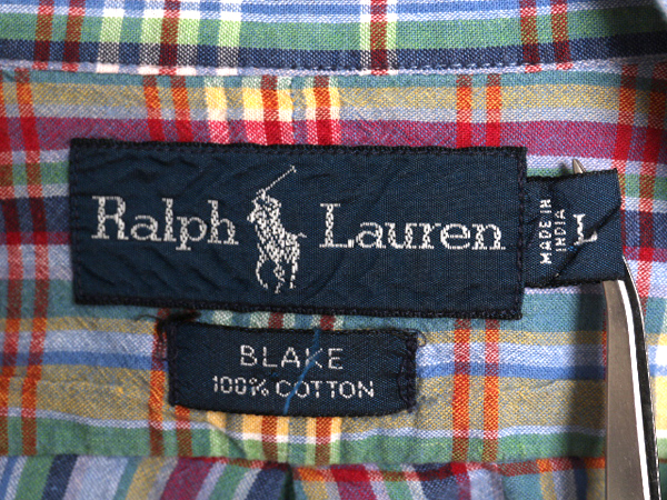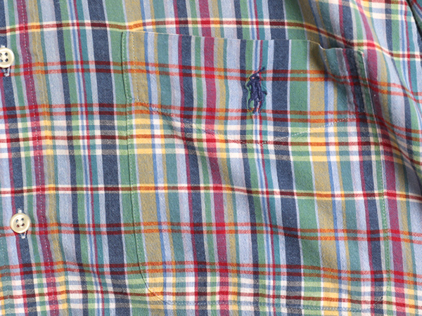 商品名 | 90s ラルフローレン マドラス チェック 長袖 ボタンダウン シャツ メンズ L オールド ポロ コットン 長袖シャツ マルチカラー ワンポイント |