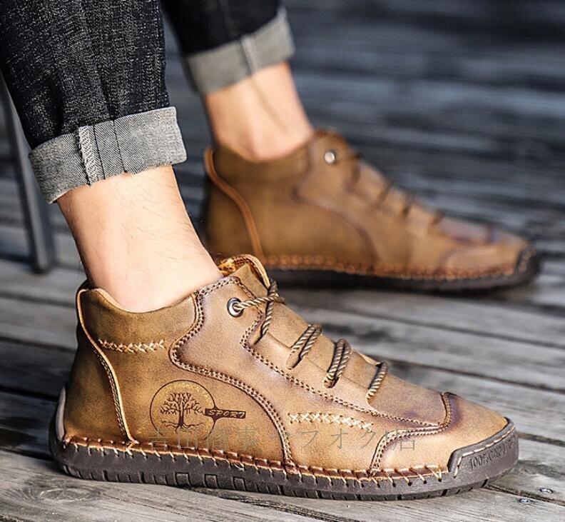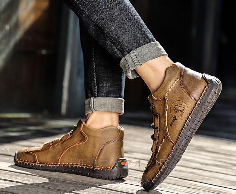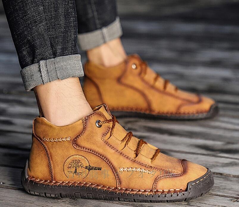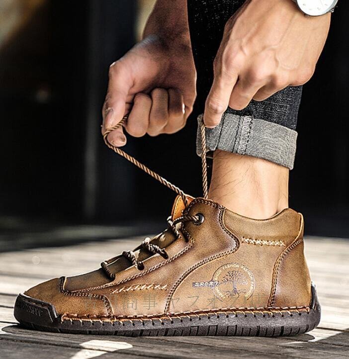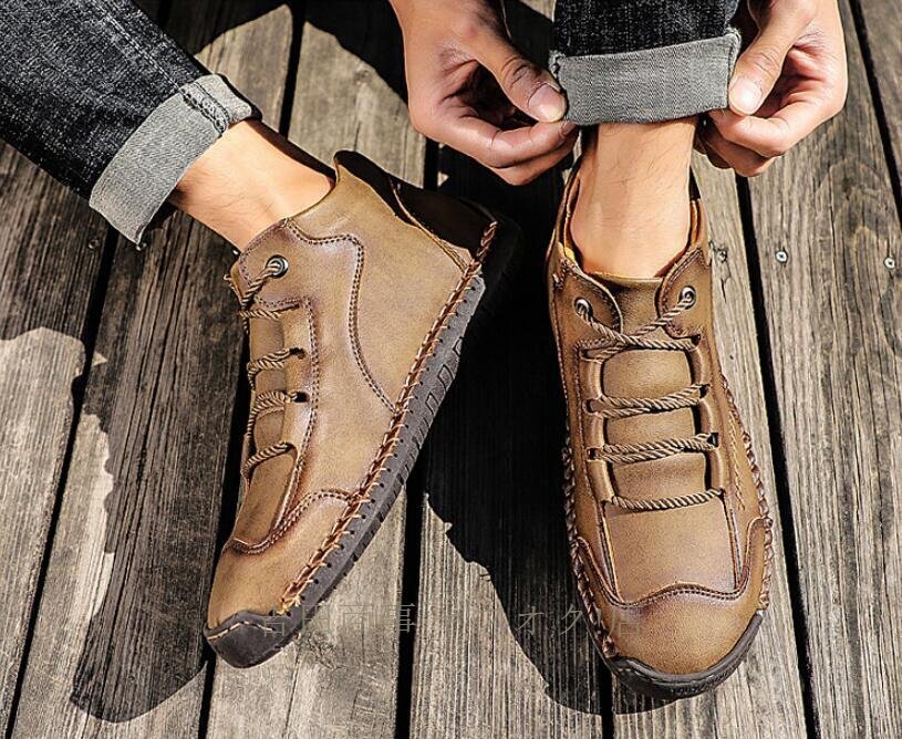 ★新品ウォーキングシューズ 本革 レザーシューズ 牛革 メンズブーツ 紳士靴 スニーカー アウトドア 軽量 通気 キャンプ 25.0cm お色選択可