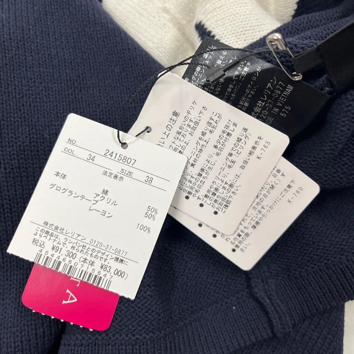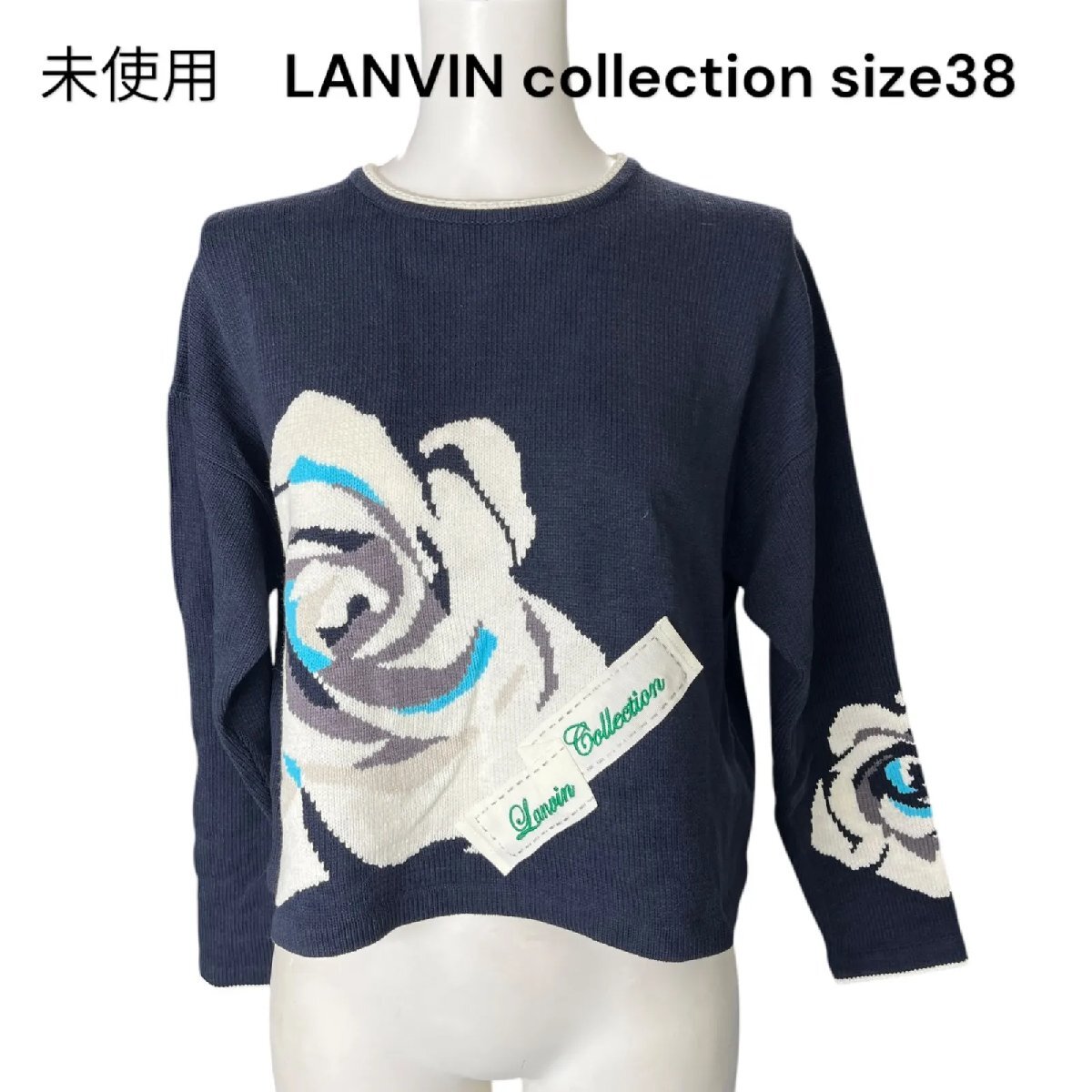未使用 ランバン コレクション LANVIN collection インターシャローズニット 薔薇花柄 38、M、9号 レディース 新中古 S5N315