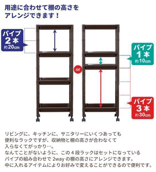 商品名 | ラック キャスター付き スリム ワゴン 棚 ブラウン M5-MGKFU8010BR |