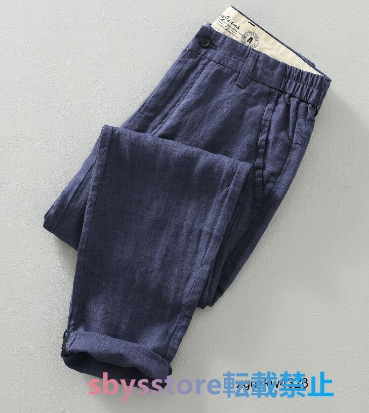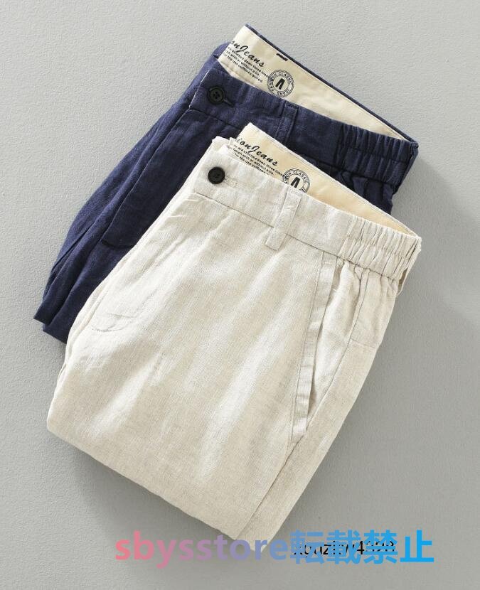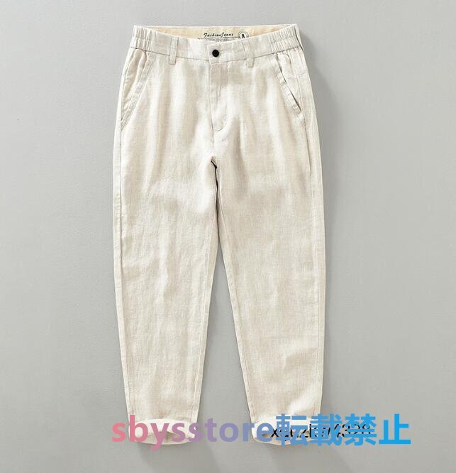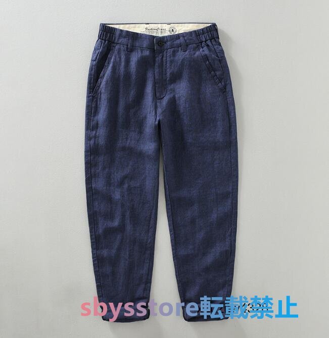 メンズパンツ 麻パンツ 春夏 ロングパンツ 無地 チノパンツ イージーパンツ 清涼感 薄手 ベージュ ネイビー M~3XL