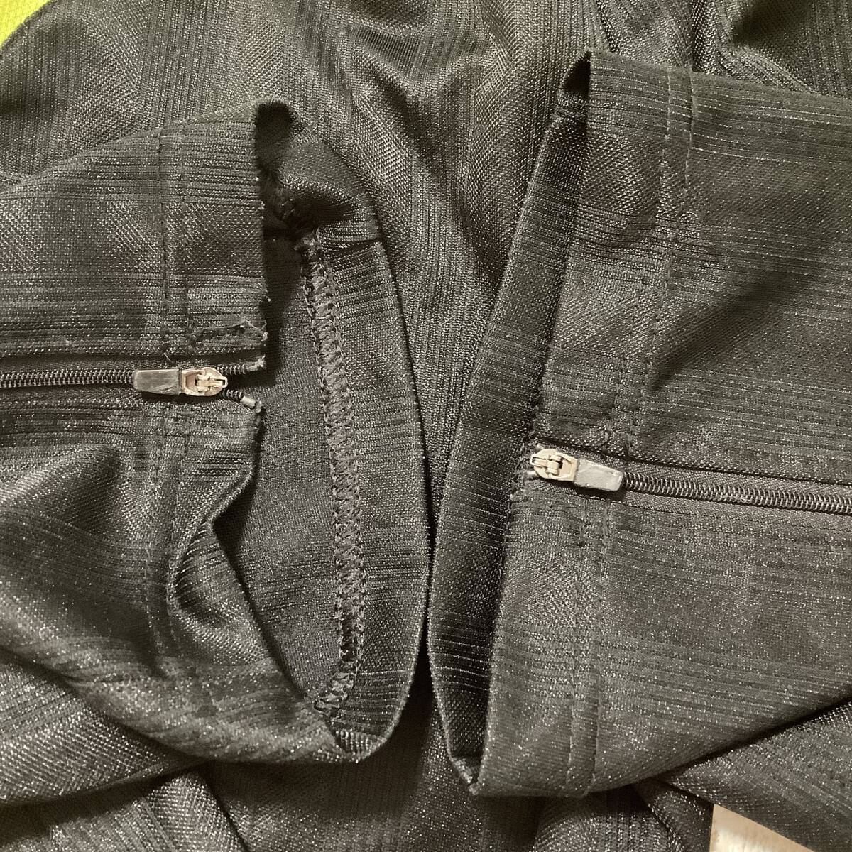 ジャケット、あまり使用感ない状態ですが、背中のロゴ部分、プリント割れしております。パンツの裾部分、キズなどございます。品質表示タグ切り取られております。
