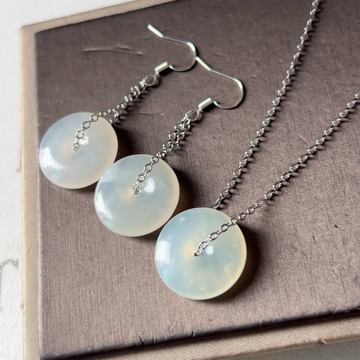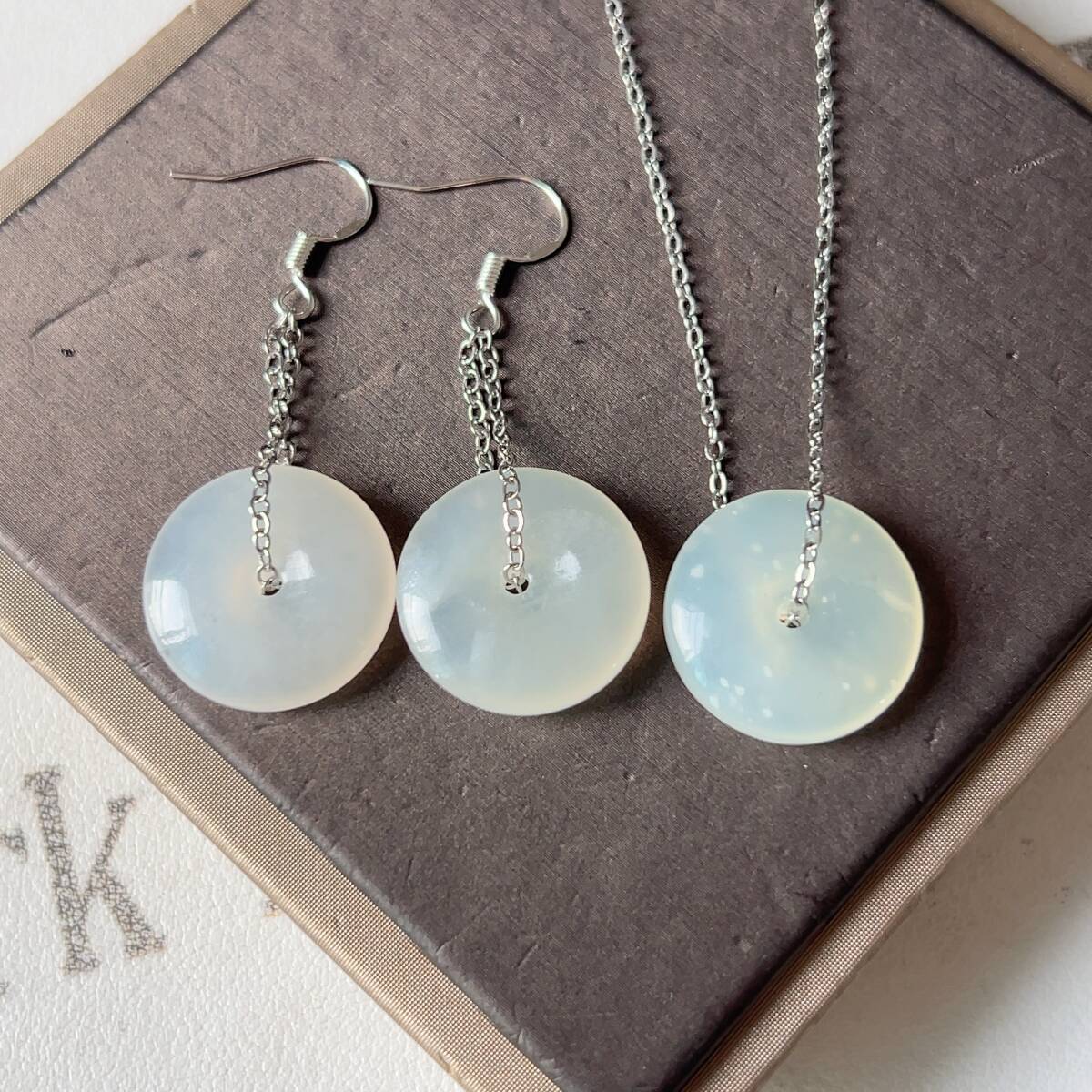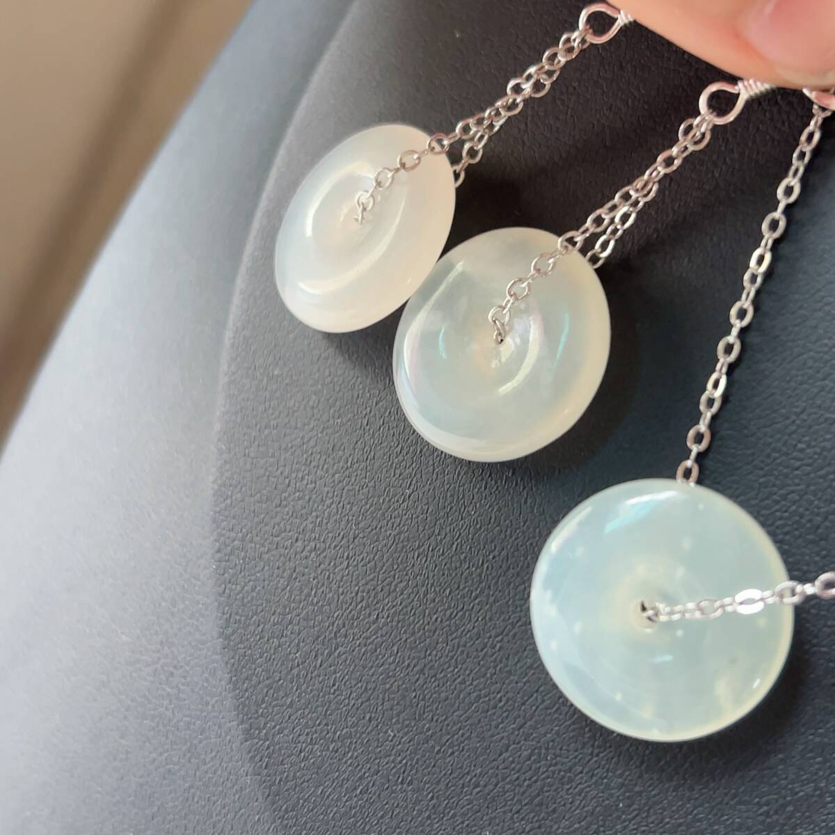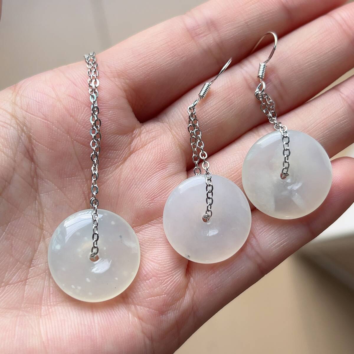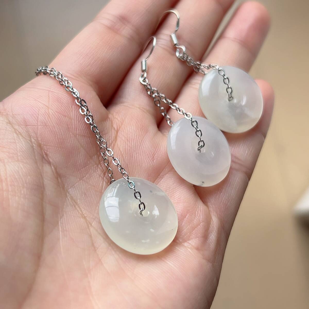 ◇岫玉◇ボーウェナイト◇ヒスイ◇ネックレスペンダント+ピアス計2点セット◇平安扣◇お守り◇天然石◇パワーストーン037P6162