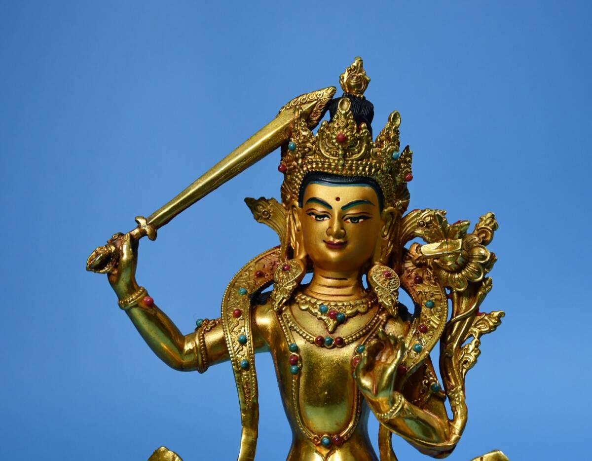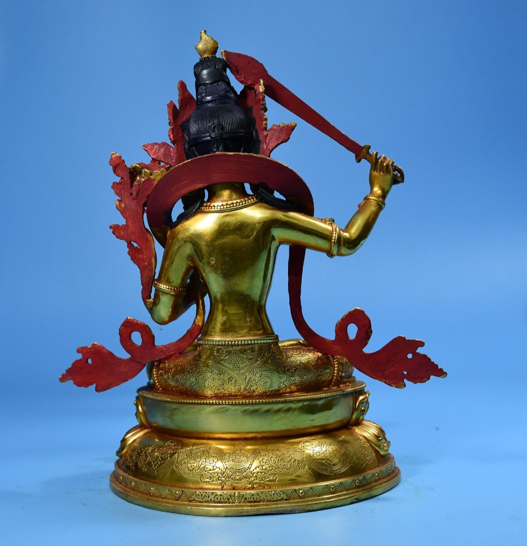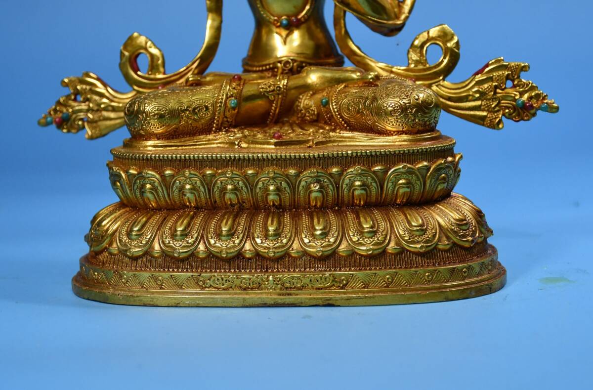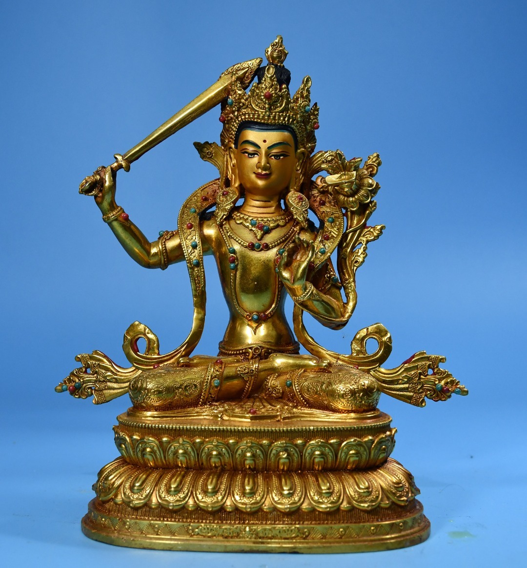 *珍品旧蔵* 大明 永樂年製 黄銅塗金 高浮彫 持劍文殊度母觀音 仏像 奉納されていた 供養品 極細工 中国古玩 仏教古美術 古美味 骨董品 H46