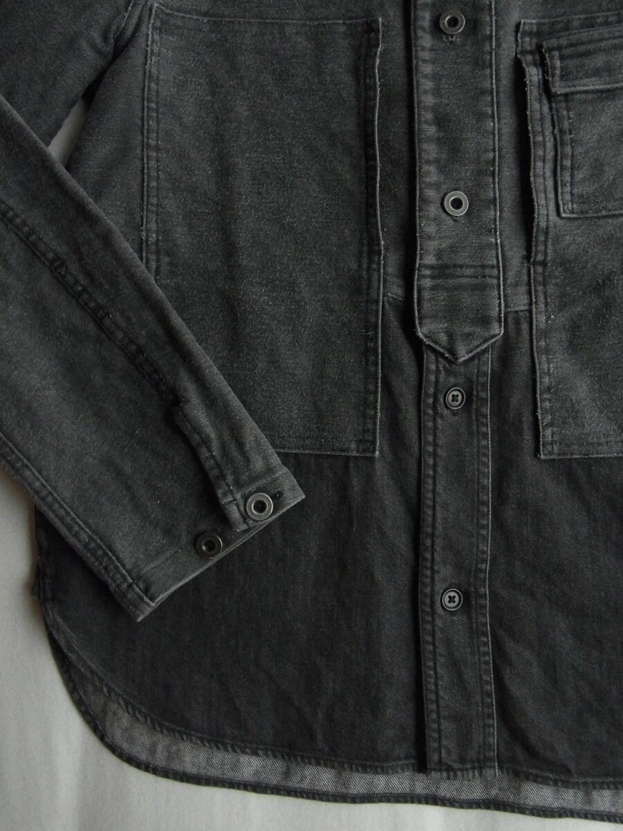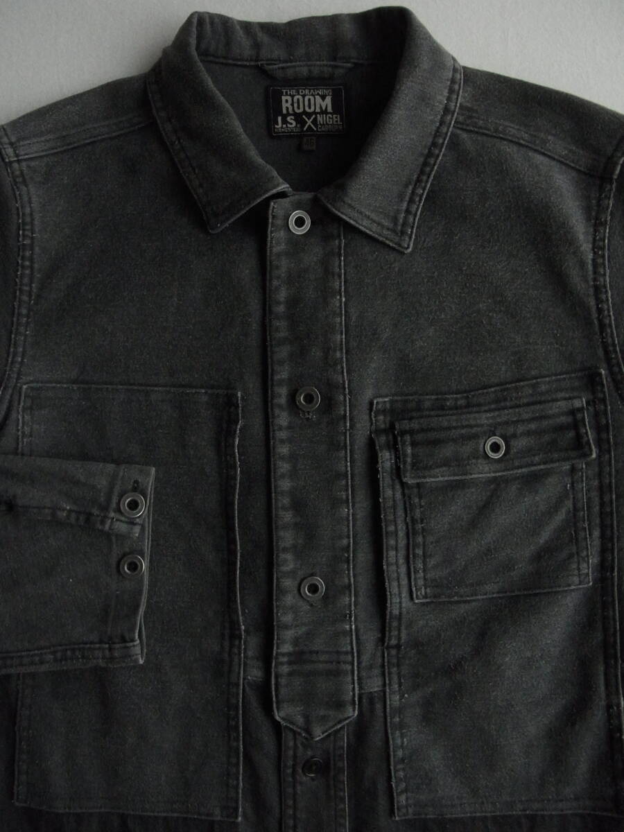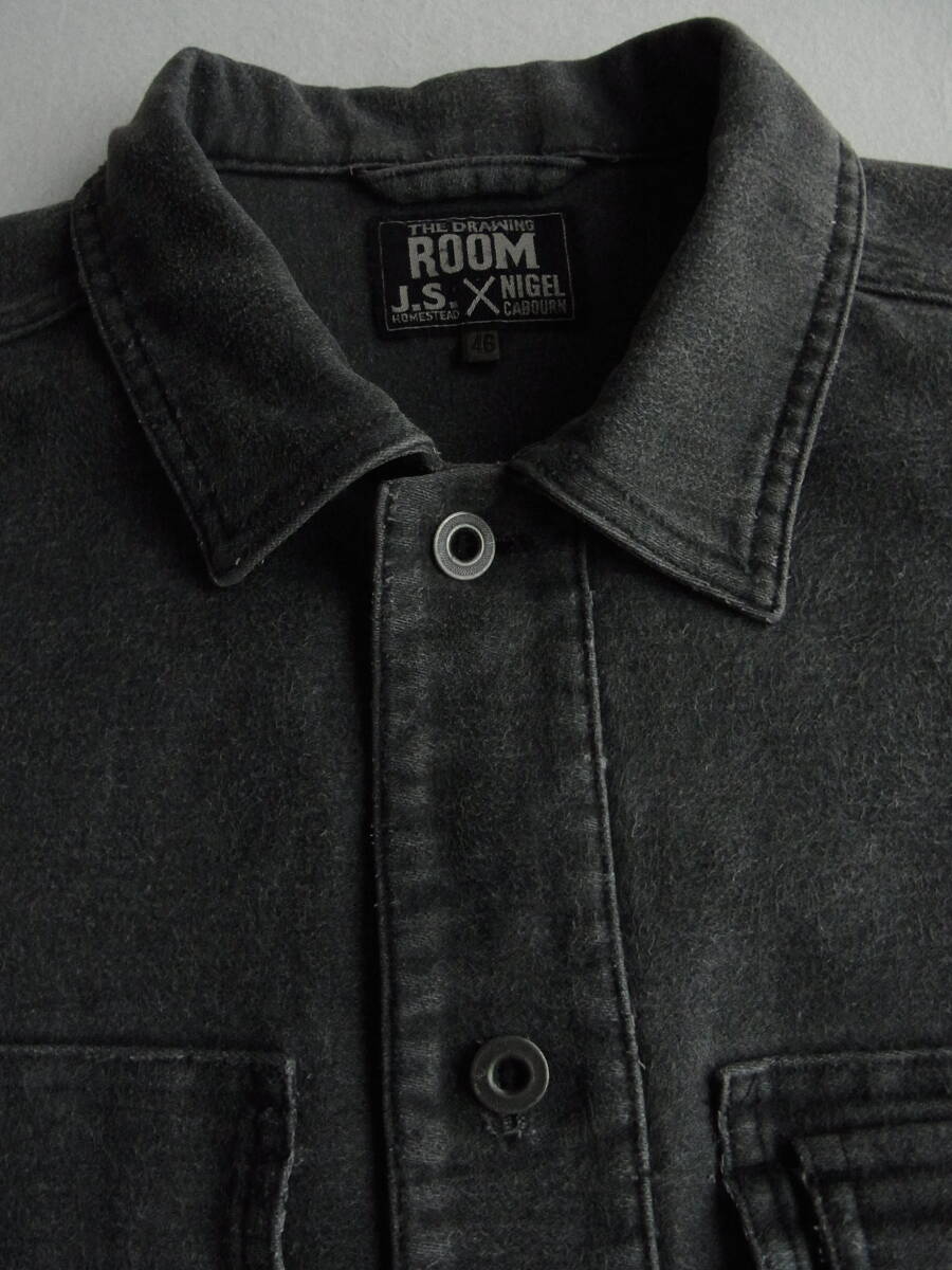 J.S.ホームステッド × ナイジェルケーボンのコットンモールスキンとブラックデニムでバイカラーのワークジャケットになります。USEDで着用感と多少の色褪せは御座いますが、それ以外には特に目立ったダメージ等は御座いません。
