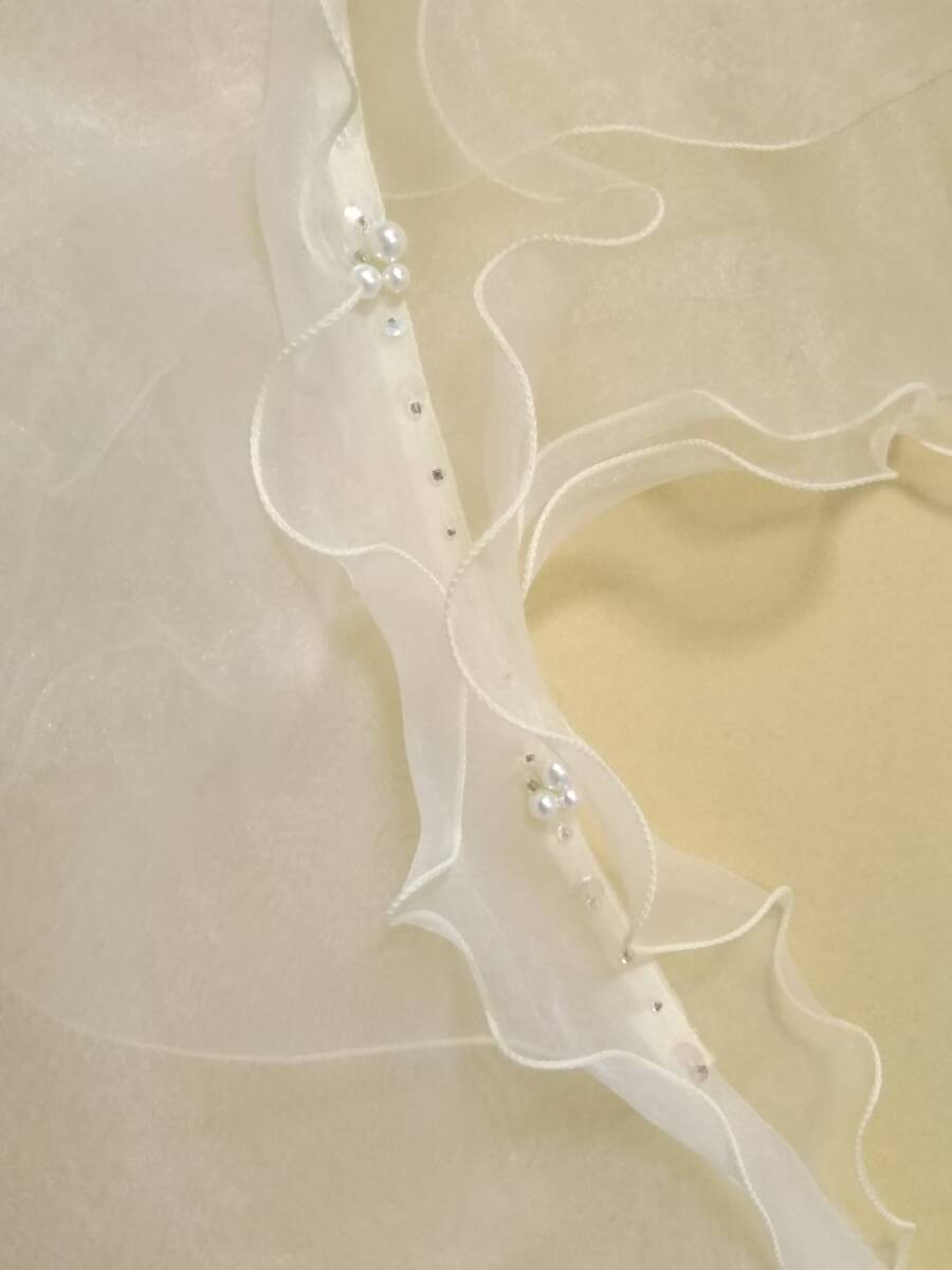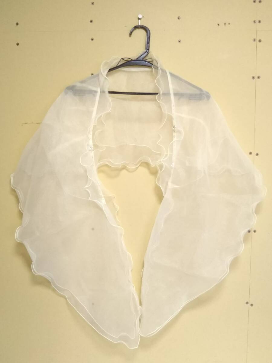 ★ラブリークイーン ショール M フォーマル レース オーガンジー 2枚重ね ビジュー フリル 結婚式 二次会