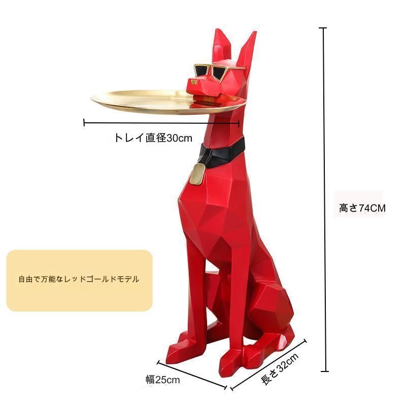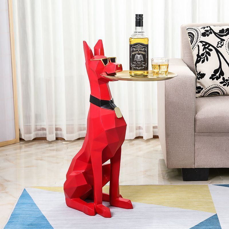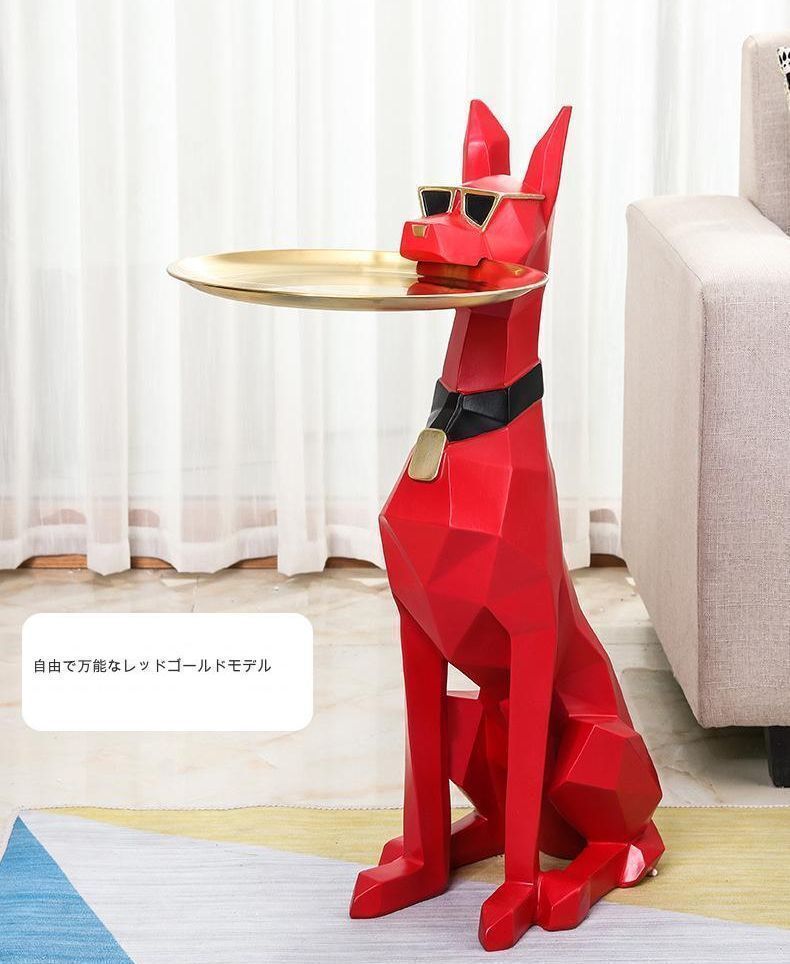 サイドテーブル 動物 金のプレートを咥えたイヌ 赤 レッド おしゃれ かわいい 74cm カフェ リビングルーム 寝室 ホテル コーヒーテーブル