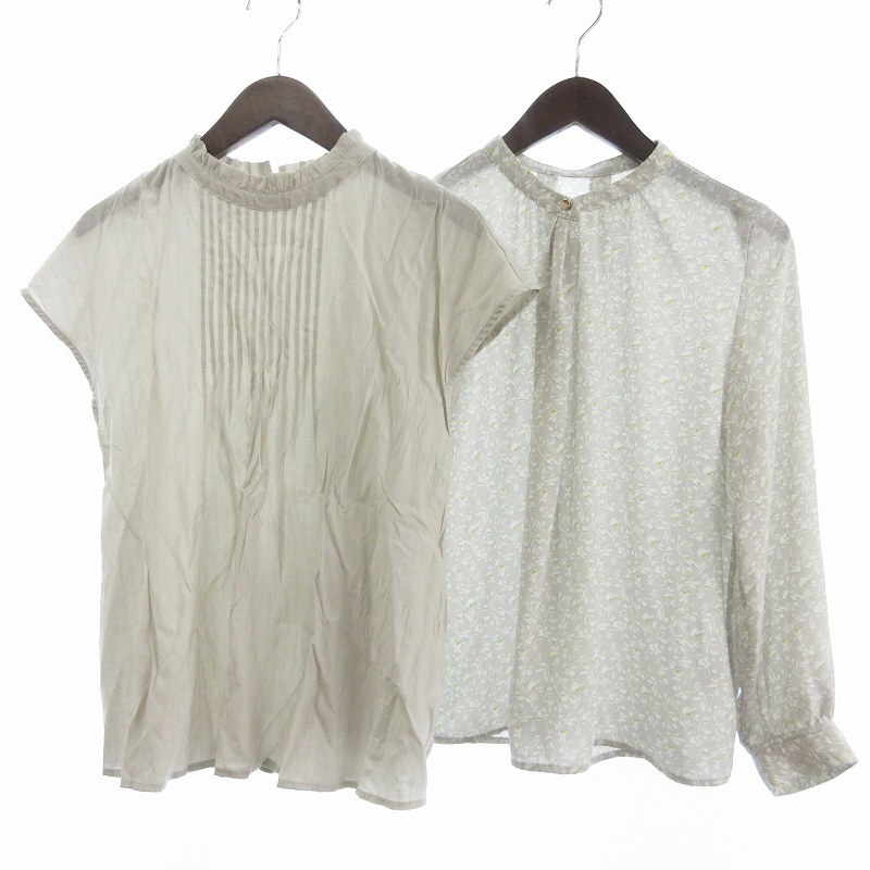 ドレスキップ DRESKIP 2点セット まとめ ブラウス カットソー 花柄 ピンタック 長袖 半袖 M グレー ベージュ レディース