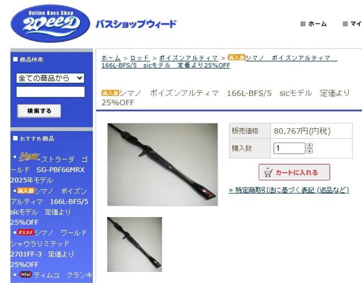 新品未使用 シマノ ポイズンアルティマ 166L-BFS/5 sicモデルの出品になります。