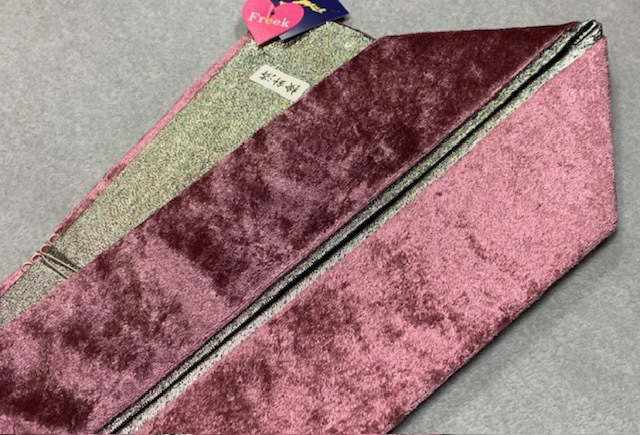 4WAY使える ママ振り袖をおしゃれにコーデ◆アンティーク系ベロアの重ね衿(くすみピンク・金)