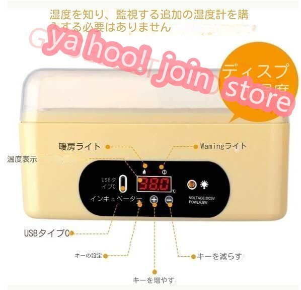 【孵卵器★良いデザイン】①蓋が半透明の状態:卵の孵化プロセスははっきり見られます。②温度センサー装置:箱内の温度を監視します。③排水穴の設計: 水量が高すぎると自動的にあふれ出し、卵が水に触れないようにします ④グリッドトレイ:空気循環を確保し、掃除が簡単 。
