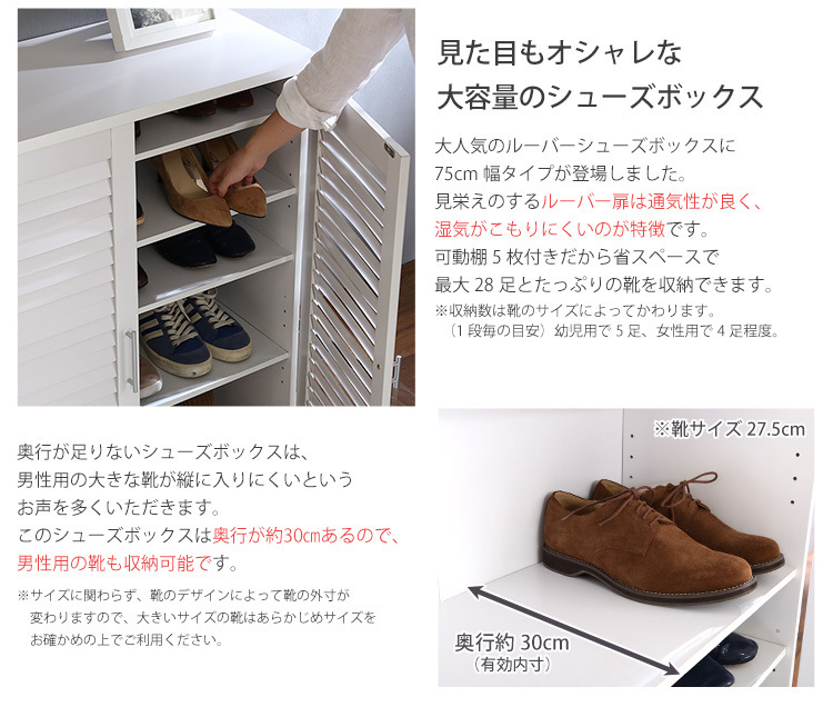 有効内寸が(約)30cmあるので、男性用の靴も収納可能です。