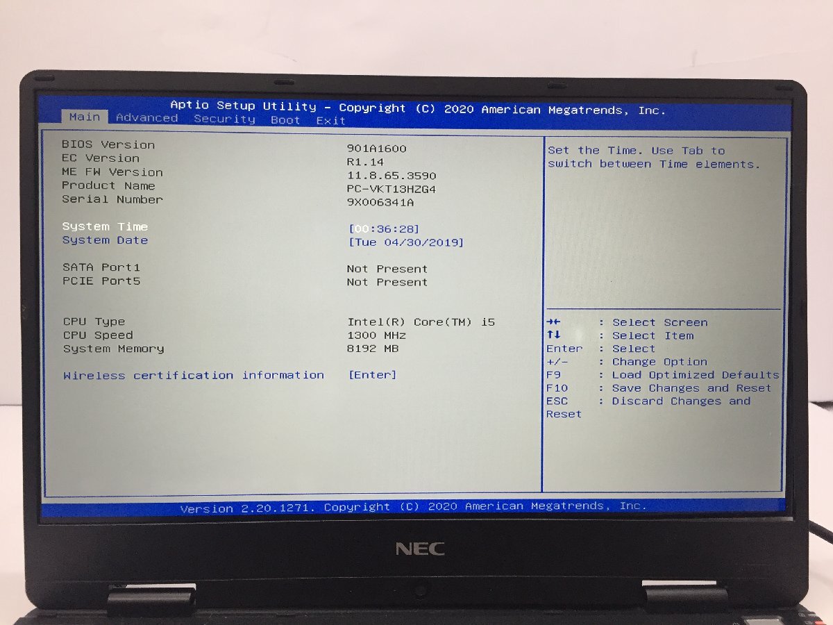 ジャンク/ NEC PC-VKT13HZG4 Intel Core i5-8200Y メモリ8.19GB ストレージ無し 【K16182】