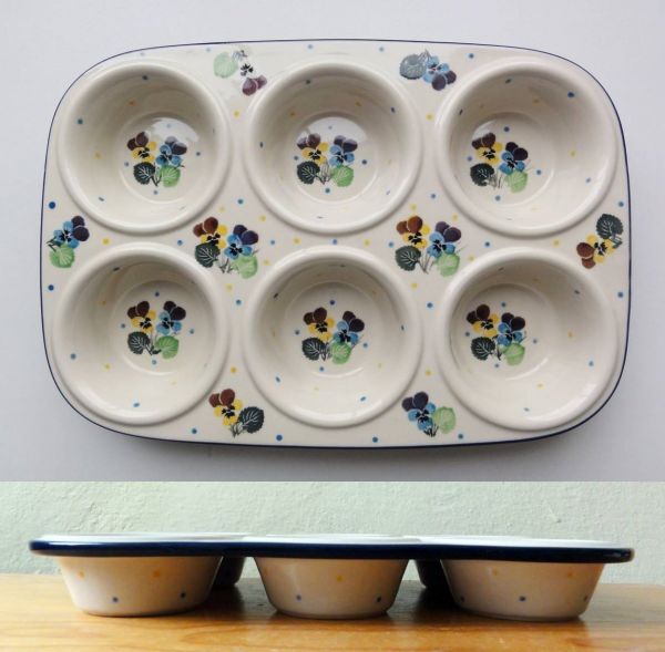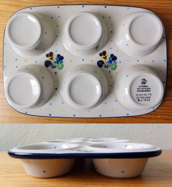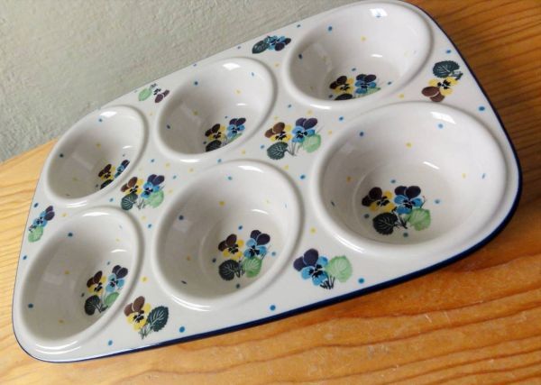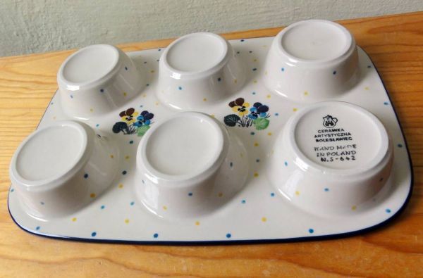 x146 ポーランド陶器 マフィン型 パンジー ビオラ ポーリッシュポタリー 食器