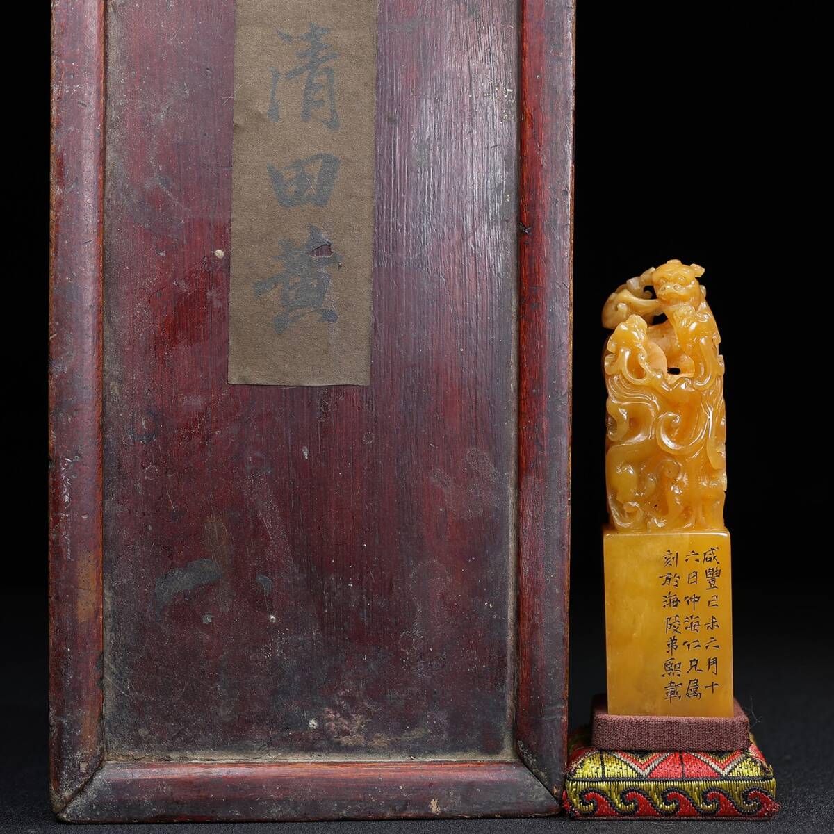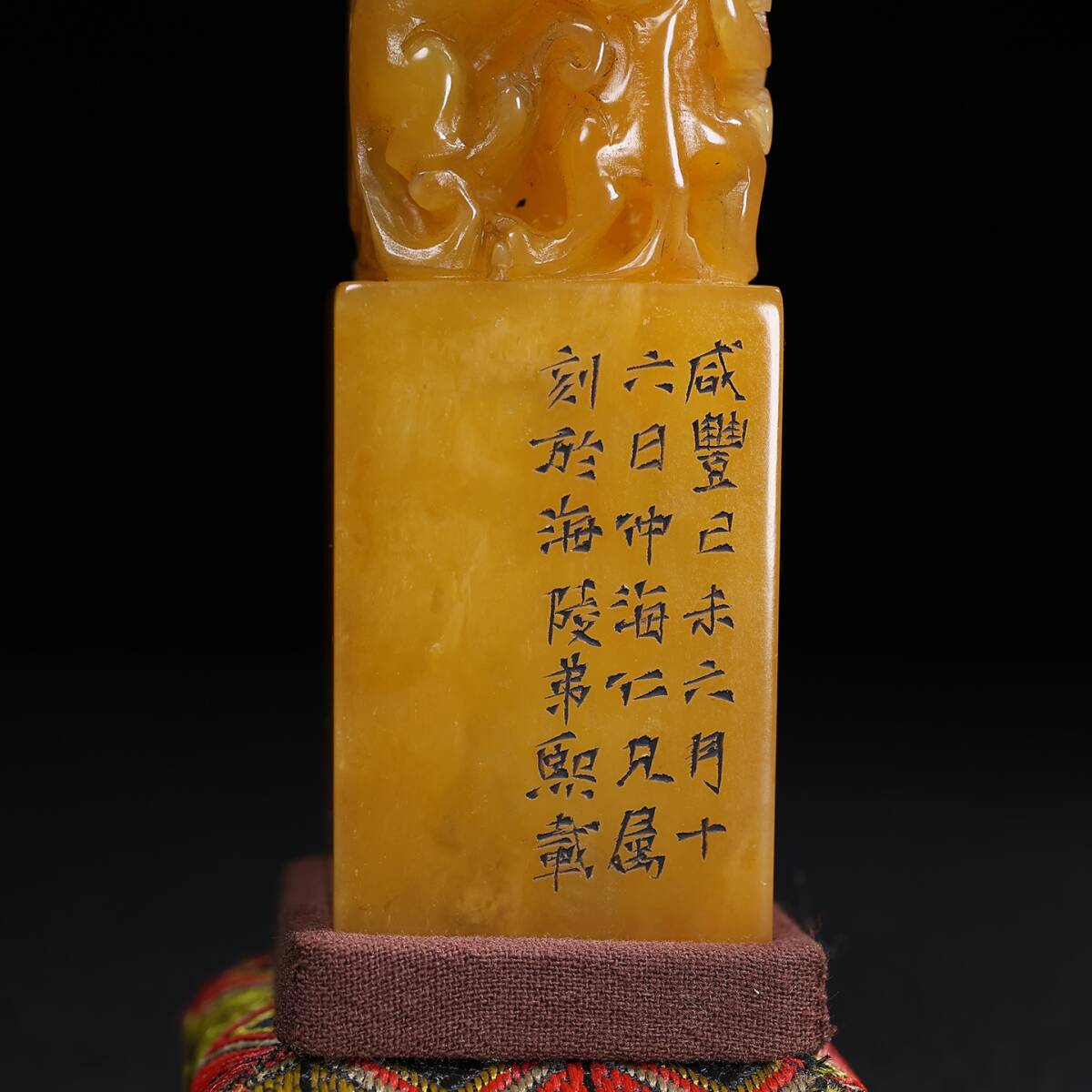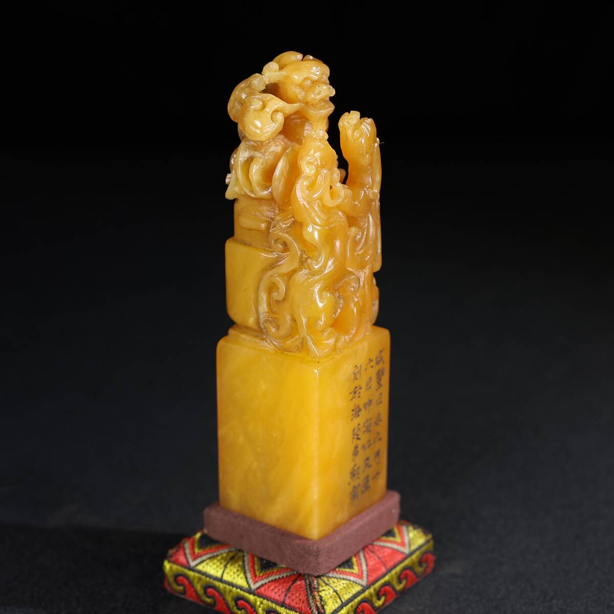 *珍品旧蔵* 【清代篆刻家 呉熙載】寿山石 キレート龍献瑞 印鑑 天然石 手彫 篆刻 古印材 極細工 中国古玩 骨董品 古美味 H47