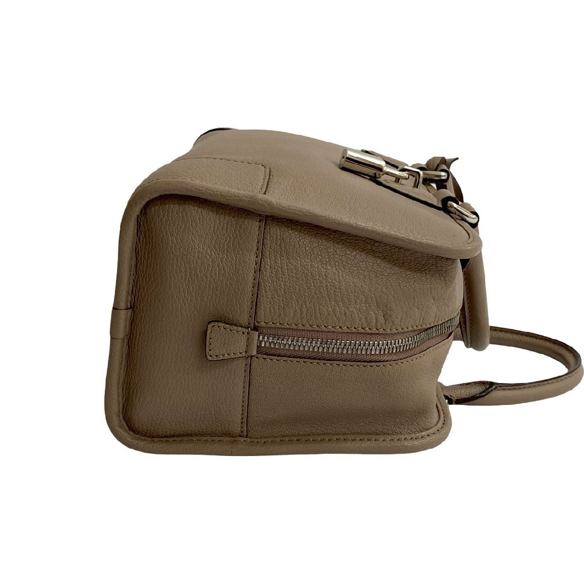 極 美品 鍵付き LOEWE ロエベ アマソナ 28 アナグラム ロゴ エンボス レザー 本革 ハンドバッグ ミニ ボストンバッグ ベージュ 37953