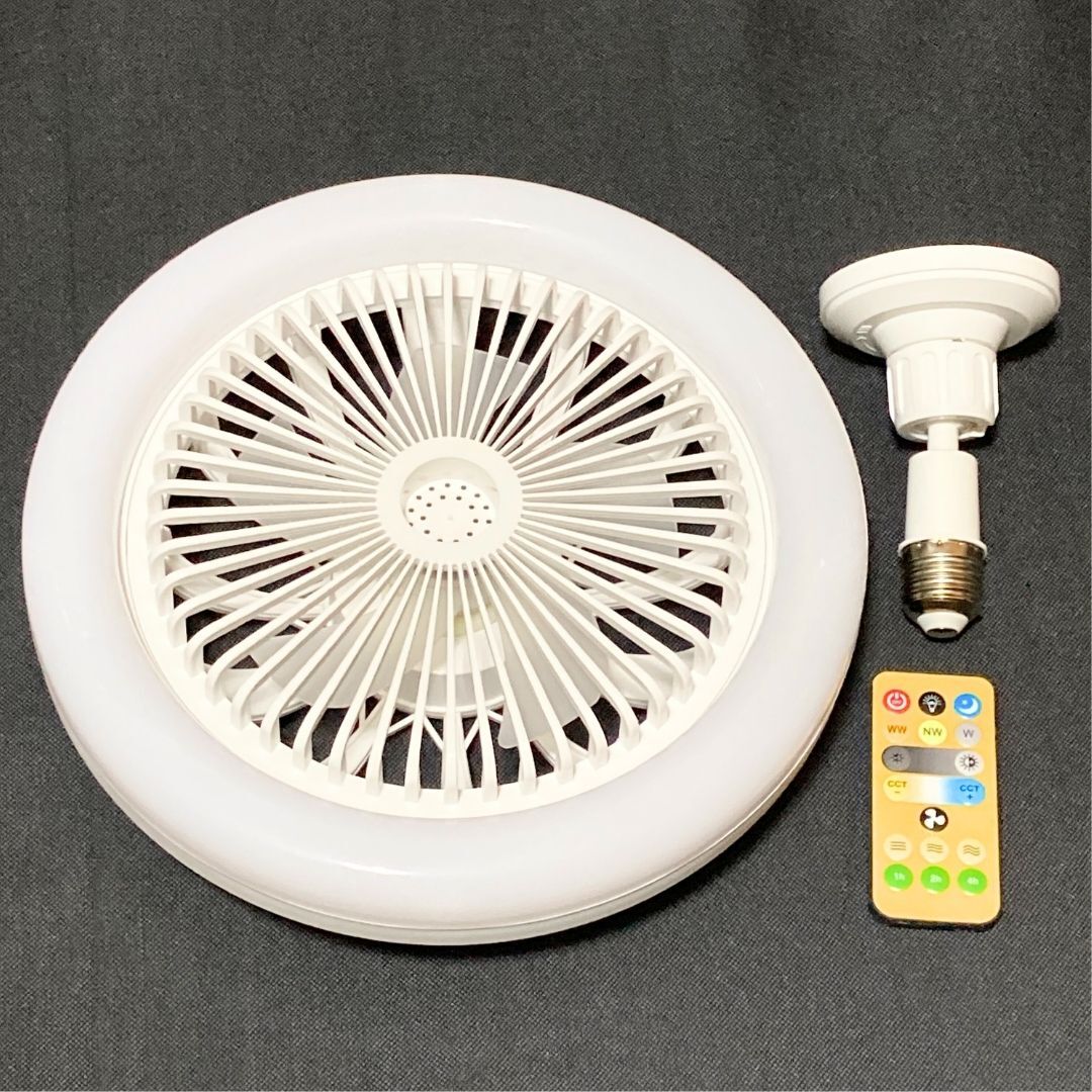 商品名:シーリングファンライト LED シーリングライト 照明 サーキュレーター ファン ライト 調光 調風 静音 電球 蛍光灯 白色 ホワイト E 26 27 【商品説明】 ・LEDライト & シーリングファン一体型:オールシーズン活躍 空気循環で冷暖房効果アップ!! ・リモコン操作(調光調色・風量調節・ON/OFF・常夜灯・タイマー) ・角度調整可能 ・消音設計・工事不要:簡単取付(電球ソケットに回すだけ) ・調光 3段階:自然光 / 電球色 / 昼光色 ・風量 3段階:弱 / 中 / 強 ・消費電力 ライト:30W ファン:4W ・明るさ:最大2250ルーメン ・色温度:3000K~6500K ・対応口金(ソケット):E26 ・取付方法:電球用ソケットに回して装着 ※引っ掛けシーリングにお取り付けの場合、 角形引掛シーリングアダプター E26 対応を 別途ご用意ください。 【詳細情報】 サイズ:260mm x 110mm 重 量:500g 調光 3段階:自然光 / 電球色 / 昼光色 風量 3段階:弱 / 中 / 強 リモコン付き 状 態:新品・未使用品 ※輸送による箱の潰れがあります。 【配送方法】 お支払い確認後、 当日〜翌々日までに発送(月・水・金曜日発送) 発送後、概ね 翌日〜翌々日で到着(離島・沖縄除く) ゆうパック での発送です。 お手渡しの配達となります。 配達日時の指定は出来ません。 ご不在の場合は、不在票が投函されます。 期限内に再配達をご依頼ください。 ※簡単な梱包でのお届けとなります。 ・説明文や商品写真のコピー・転載はお止め下さい! | |||