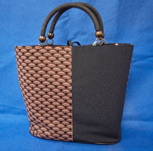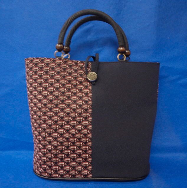 新品 訳あり 0163 和装バック 黒 青海波(レターパック発送不可)