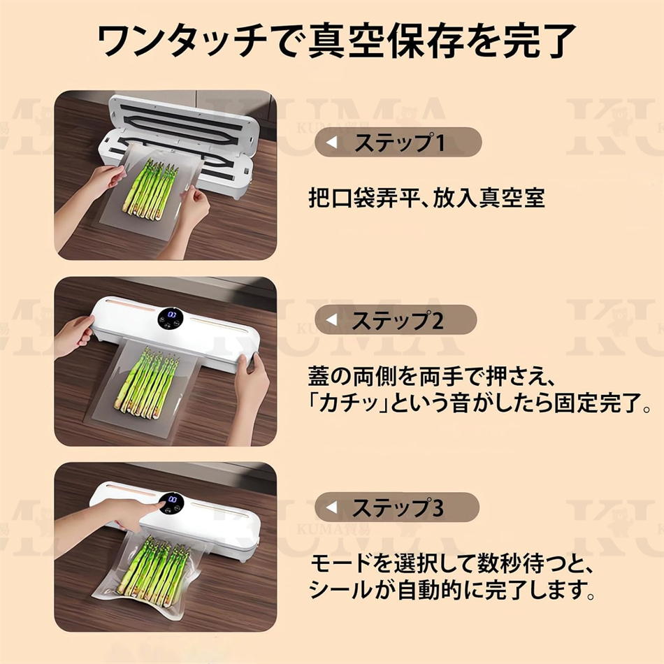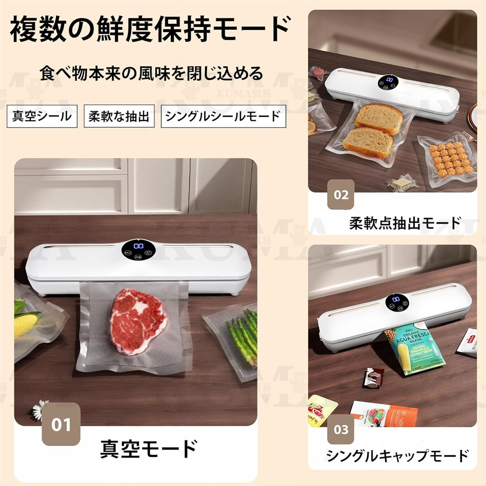 【家庭用強吸力真空包装機】:強力な吸引力を持つ真空包装機で、簡単に真空密封を実現します、素早く真空状態にします。この家庭用に設計された真空包装機は、食材の風味や水分を保ち、鮮度長持ち、食品の腐敗や廃棄を効果的に減らすことができます。<br>