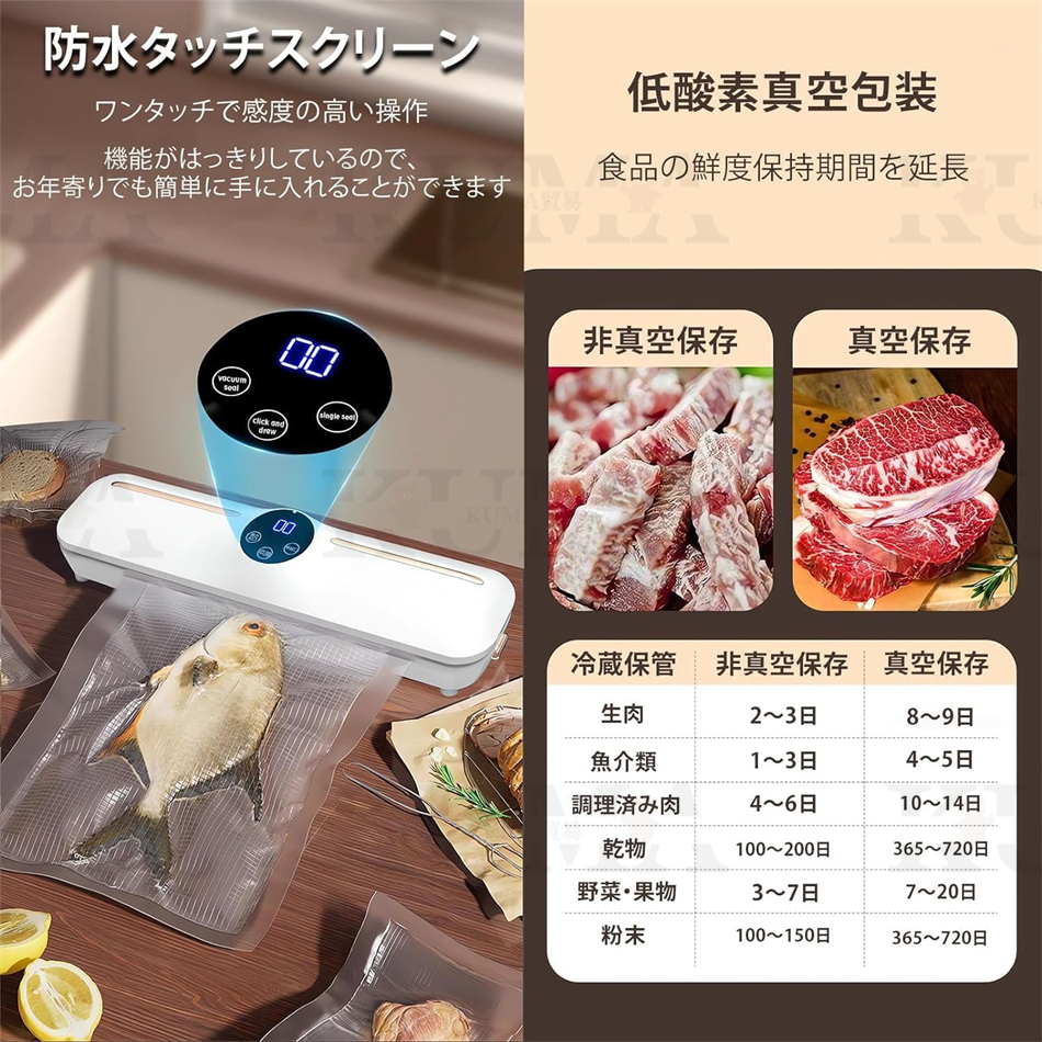 【さまざまな食材に対応】:肉、魚、野菜、乾燥した果物など、さまざまな食材の新鮮さを保つことができます。酸化を防ぐ真空抽出により、食材の栄養を保存し、味をより良く浸透させることができます。食材の保存や収納、調理を簡単に実現します。最高レベルの真空効果を実現し、食品をより良く保存できます。<br>