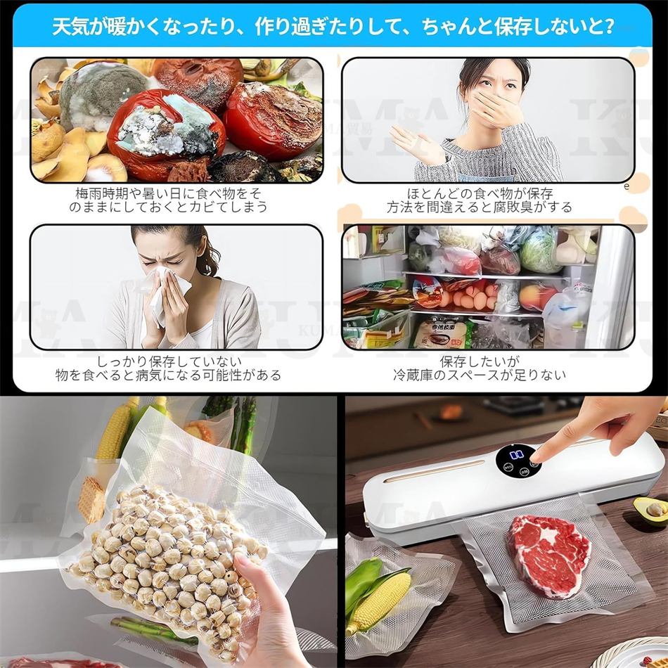 【コンパクトで静音】:真空パック器は収納する物から余分な空気を抜きことで、体積を小さくすることができ、収納や整理をしやすくします。 また、この真空包装機はコンパクトなデザインと軽量モデルで、持ち運びに便利です。<br>