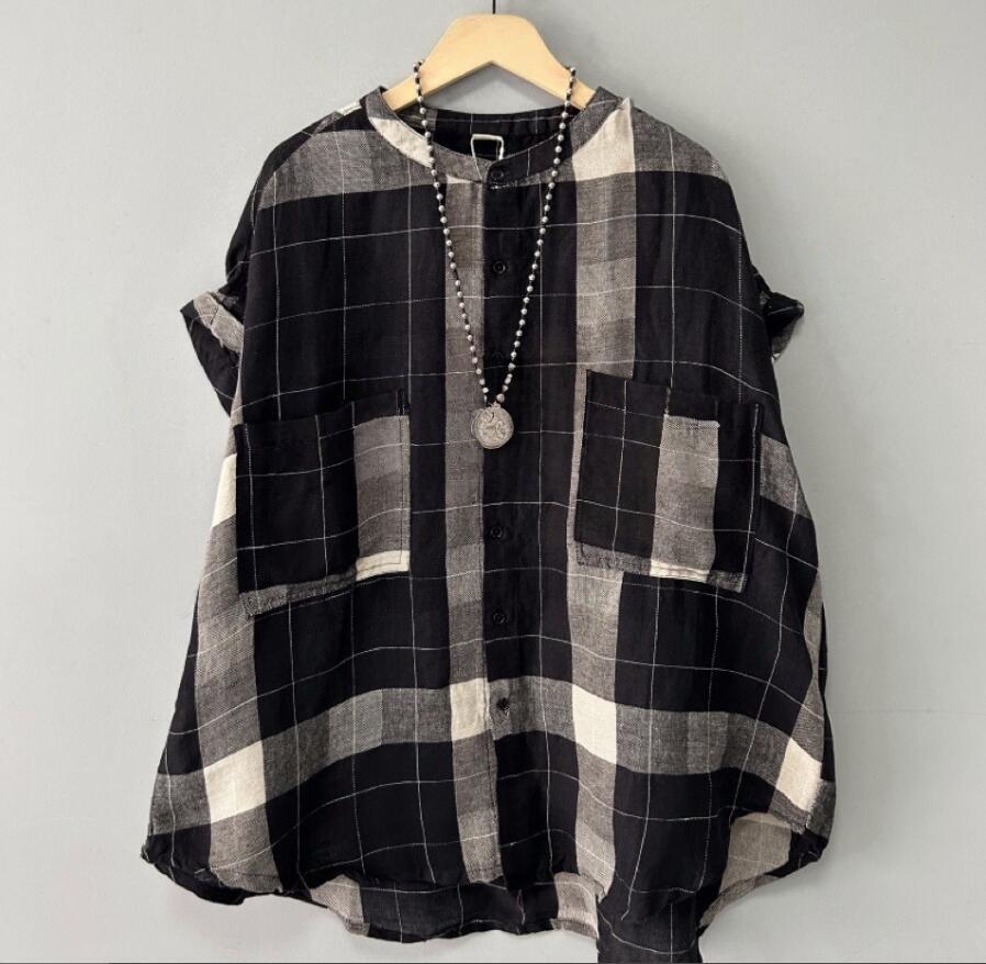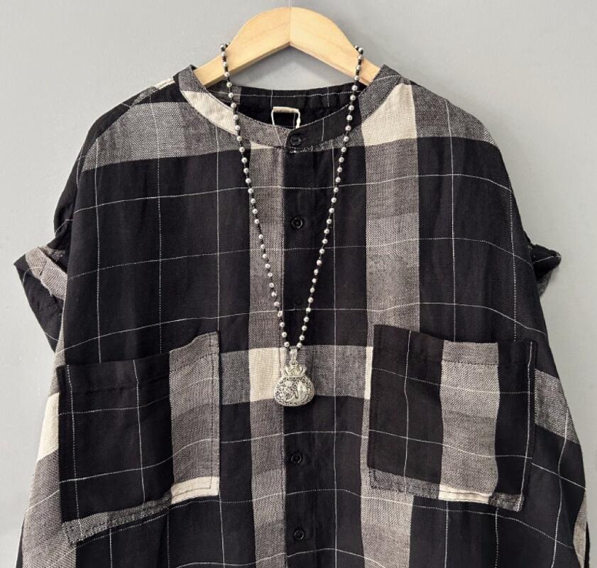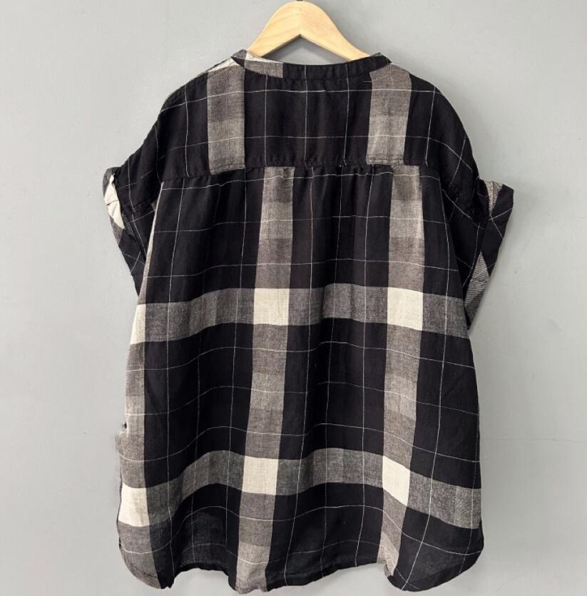 人気推薦/レディース チュニック チェック柄 ブラウス トップス 綿麻 シャツ 半袖 体型カバー コットンリネン ゆったり