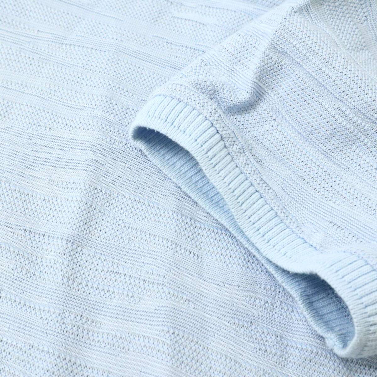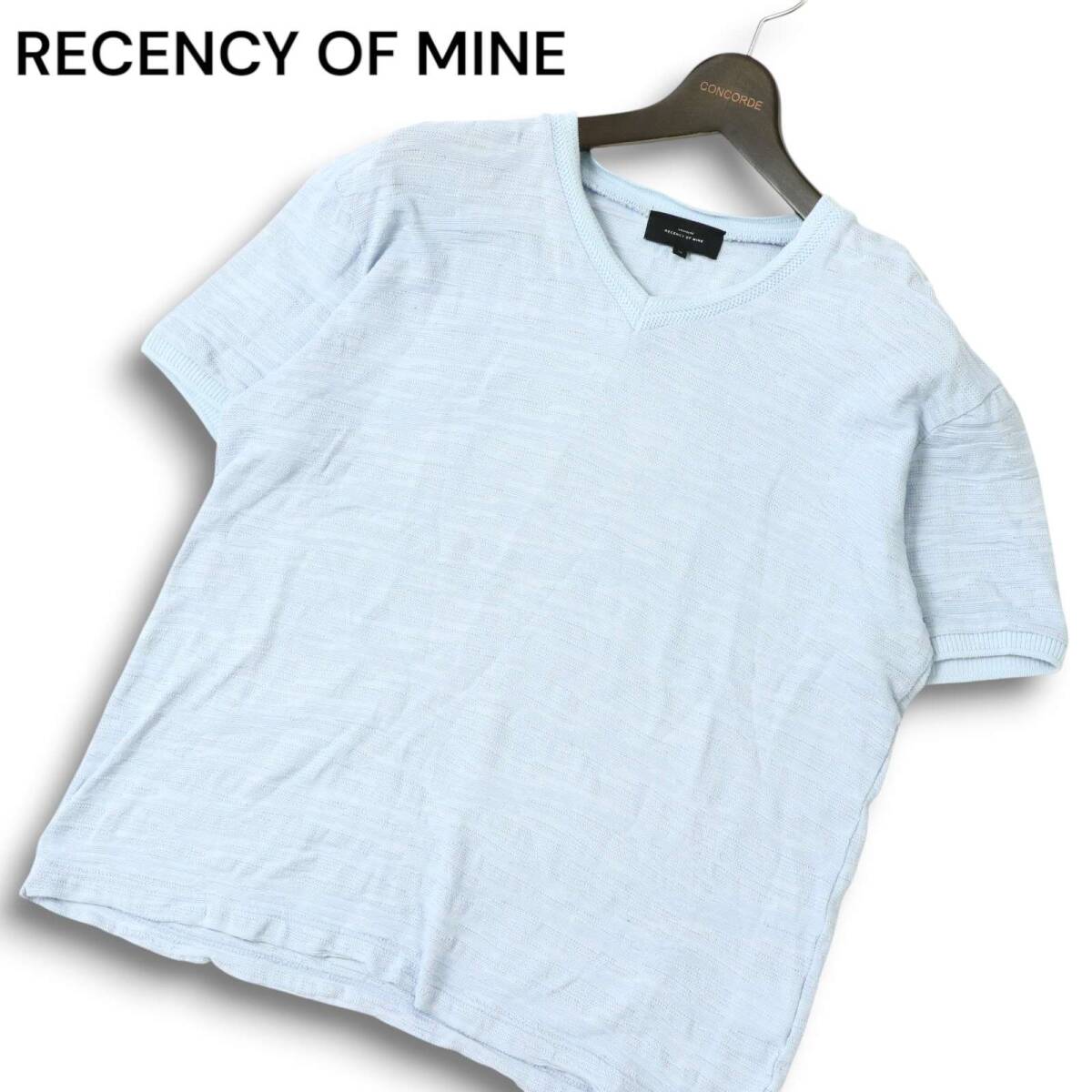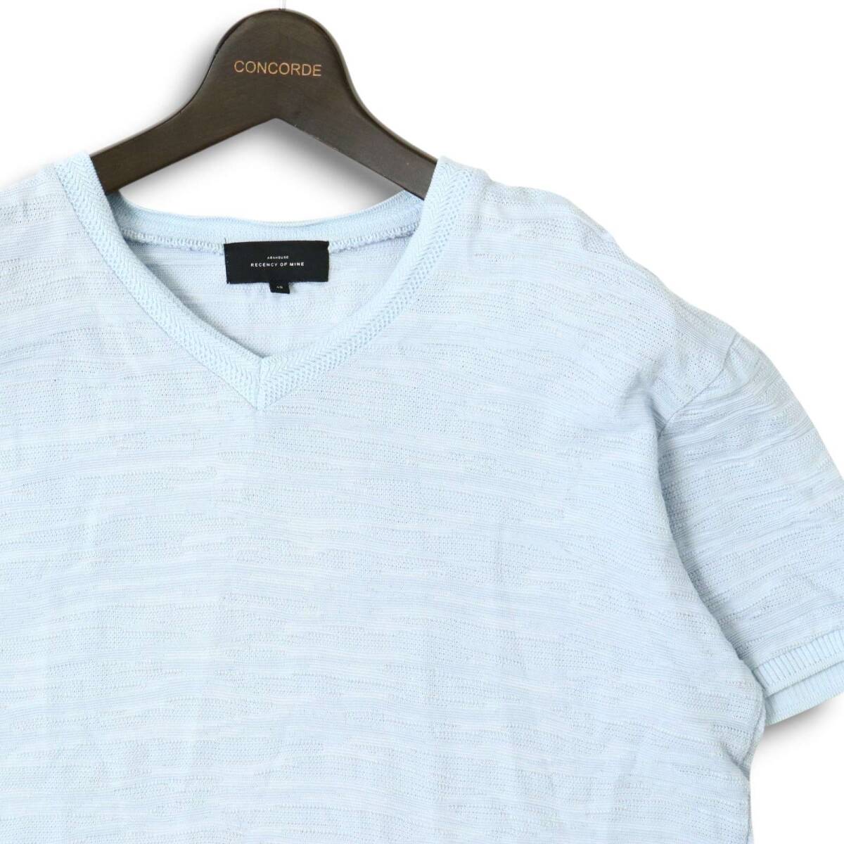 RECENCY OF MINE アバハウス 春夏★ ジャガード ボーダー サマー ニット 半袖 Vネック Tシャツ Sz.48 メンズ 日本製