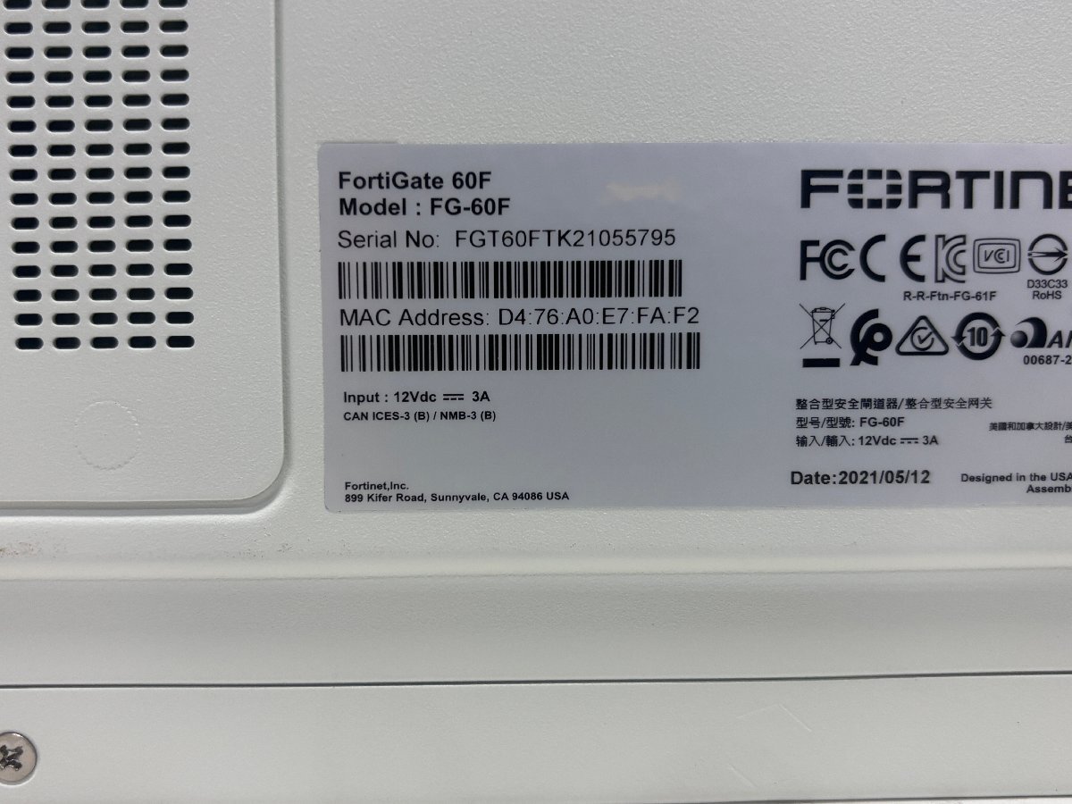 | 型番 | Fortigate 60F |
