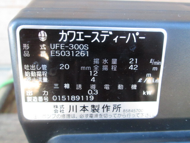 Y-12 川本 深井戸水中ポンプ デイーパー UFE-300S 部品 中古
