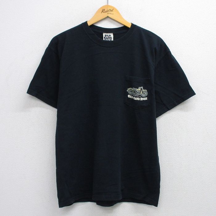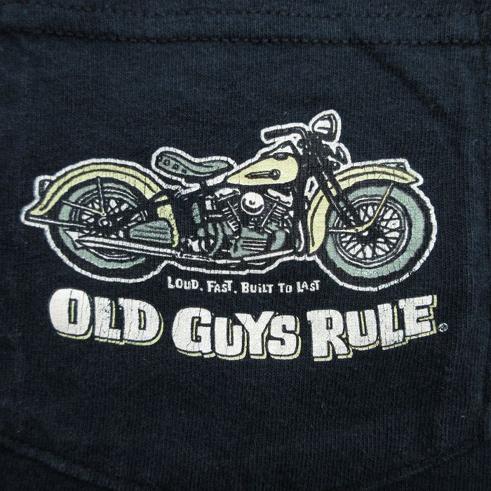 【商品名】 L★古着 半袖 ビンテージ Tシャツ メンズ 00年代 00s バイク OLD GUYS RULE 胸ポケット付き コットン クルーネック 黒