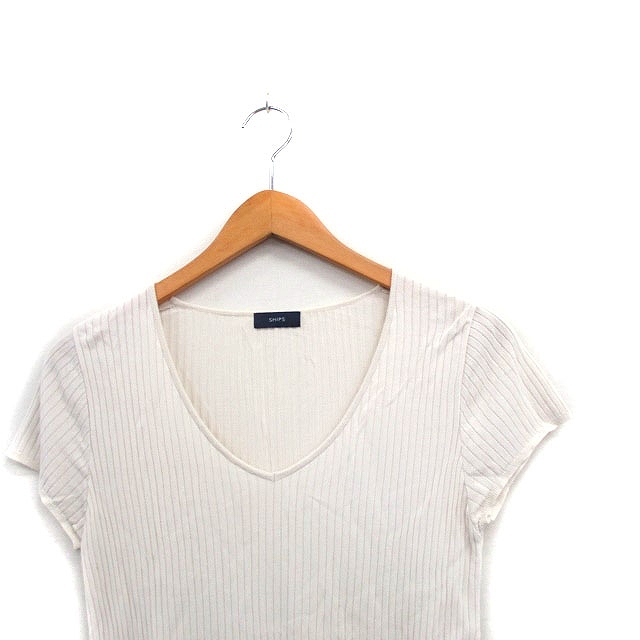 シップス SHIPS リブ カットソー Tシャツ 半袖 シンプル アイボリー 白 /KT23 レディース