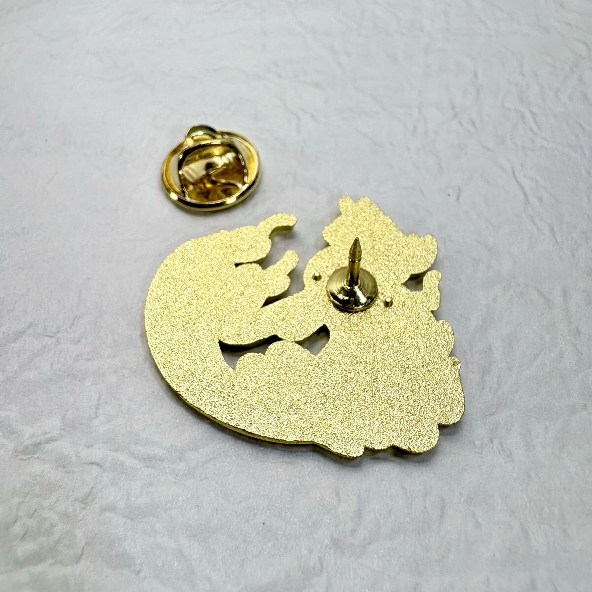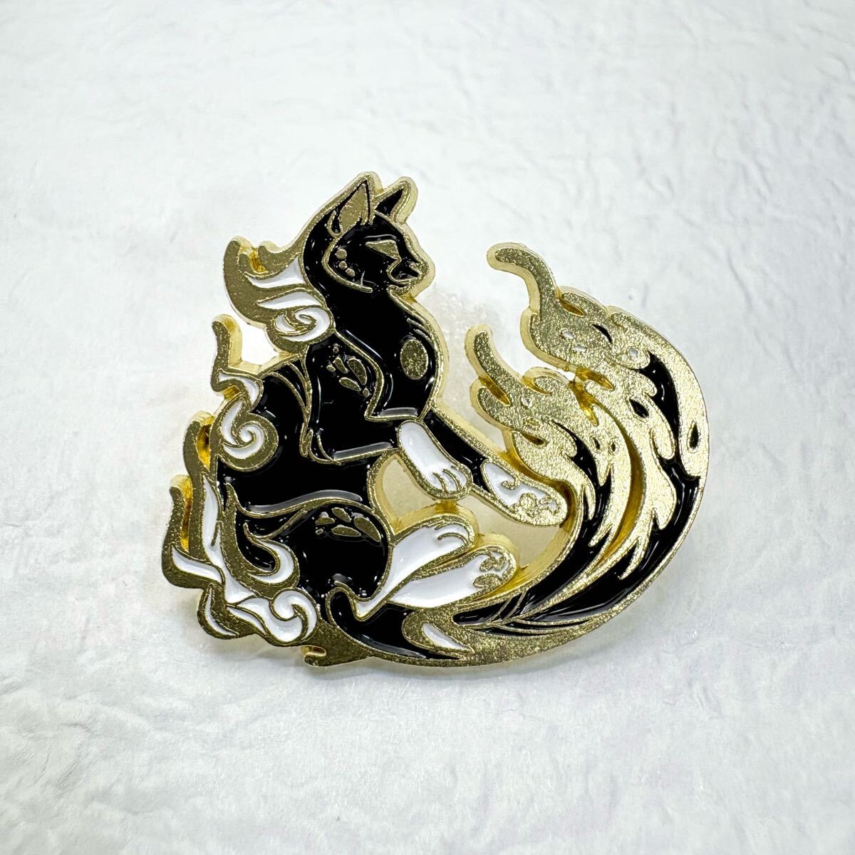 【ピンバッジ】モノクローム 黒猫 猫又 炎 ゴールド かっこいい